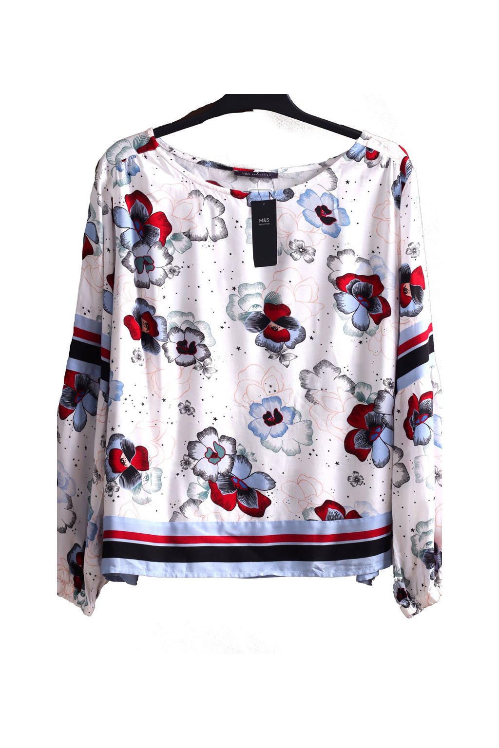 Dámská bílo-modro-červená květovaná halenka / M&S (52/54) / na štítku vel. 52 / UK 24 / ANGLIE