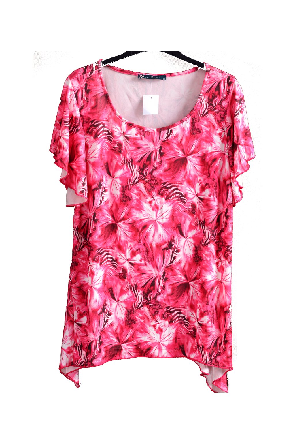 Dámská bílo-růžová halenka se vzorem květů a netopýřími rukávy / AMBER / XXL (46) / / UK 18 / ANGLIE