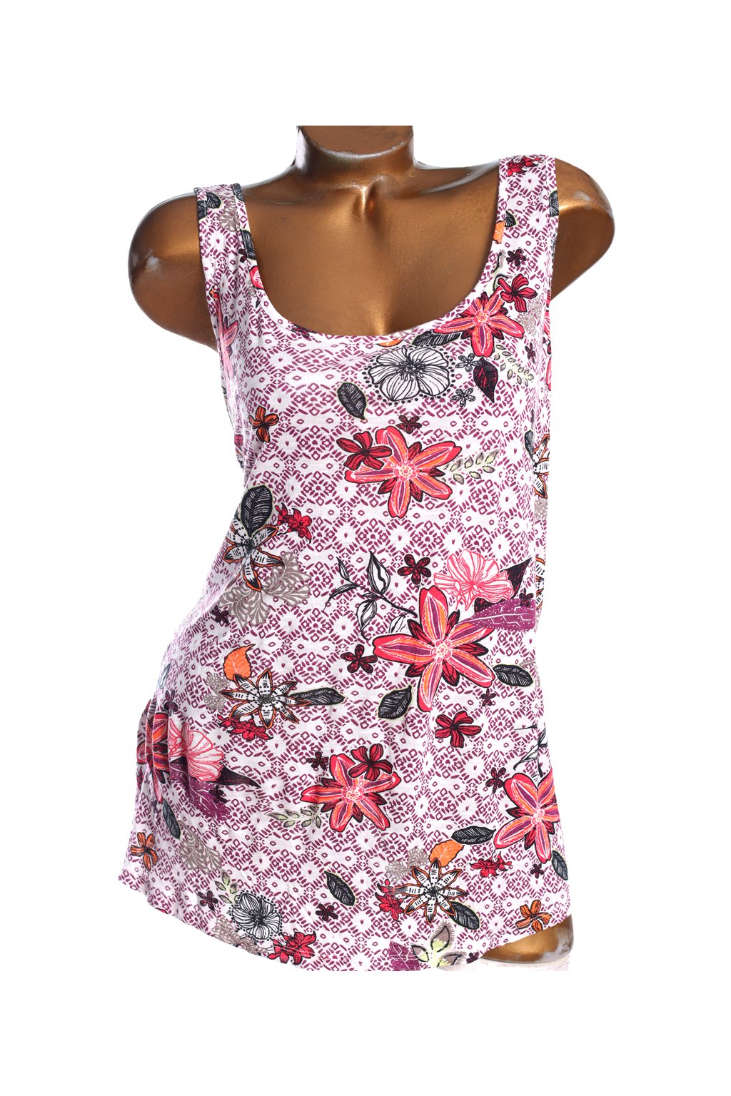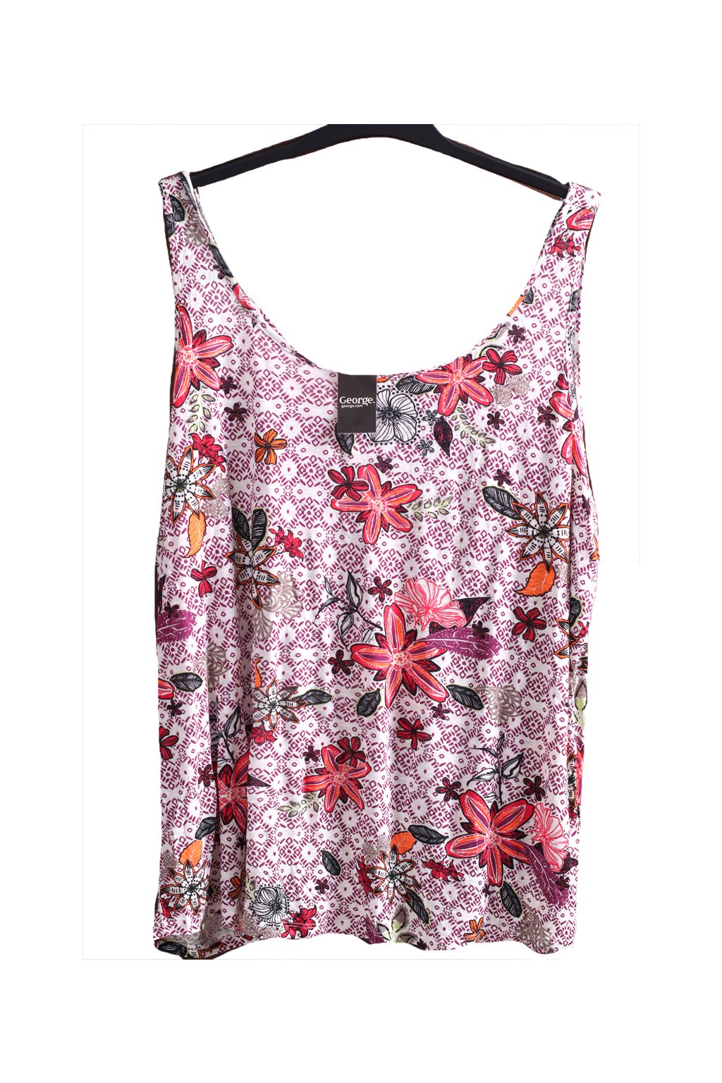 Dámská bílo-vínová vzorovaná květovaná tílková halenka / George / XXXXL (52) / UK 24/ ANGLIE