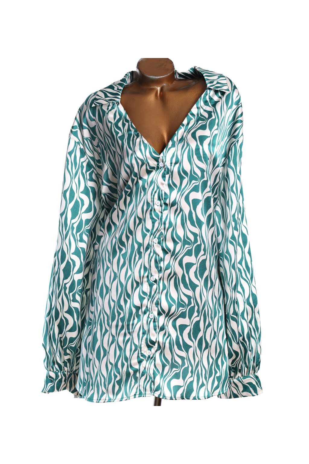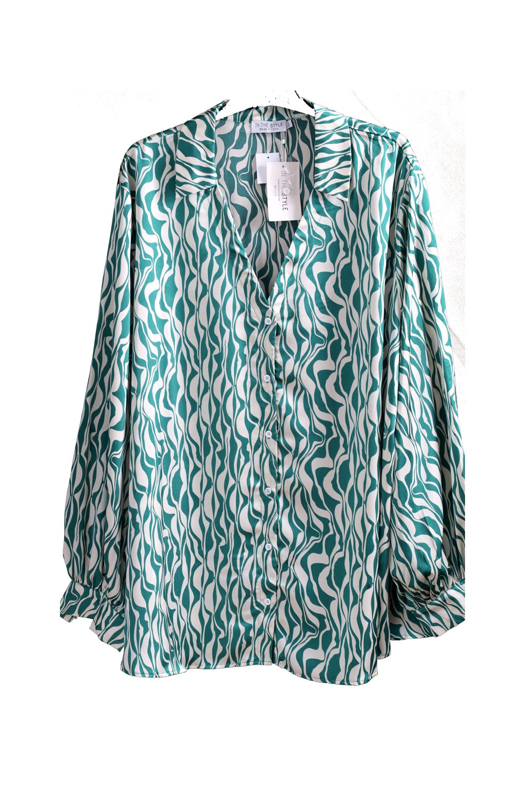Dámská bílo-zelená vzorovaná saténová halenka / In the style / XXXXL+ (60) / UK 32 / ANGLIE