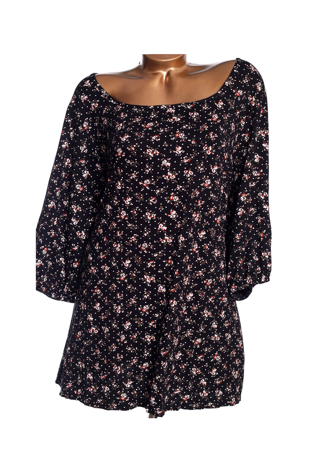 Dámská černá barevně květovaná tunika s puntíky / YOURS / XXXXL (54/56) / UK 26/28 ANGLIE