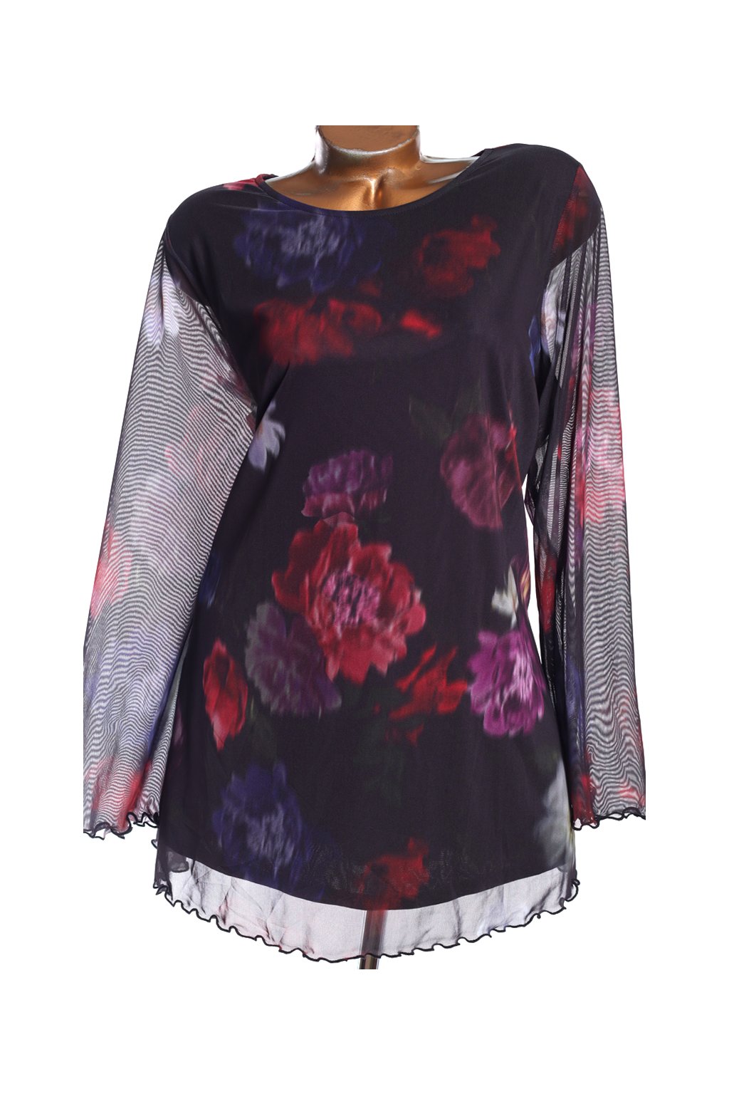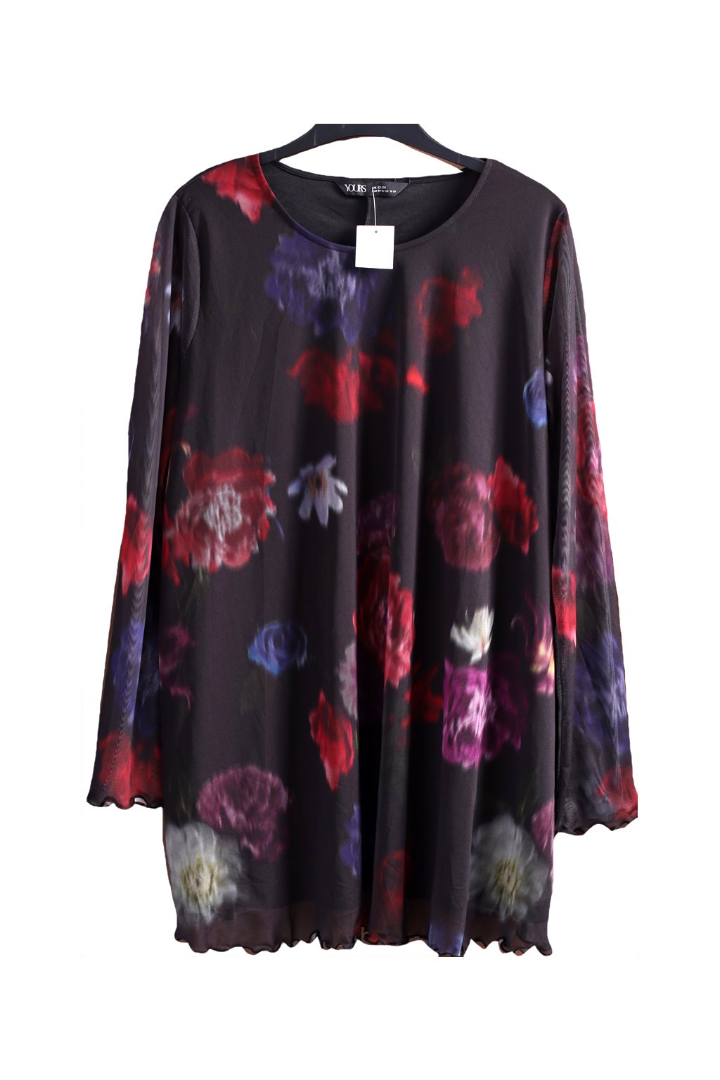 Dámská luxusní černá delší halenka/šaty s barevnými květy / YOURS / XXXL (50/52) / UK 22/24 / ANGLIE
