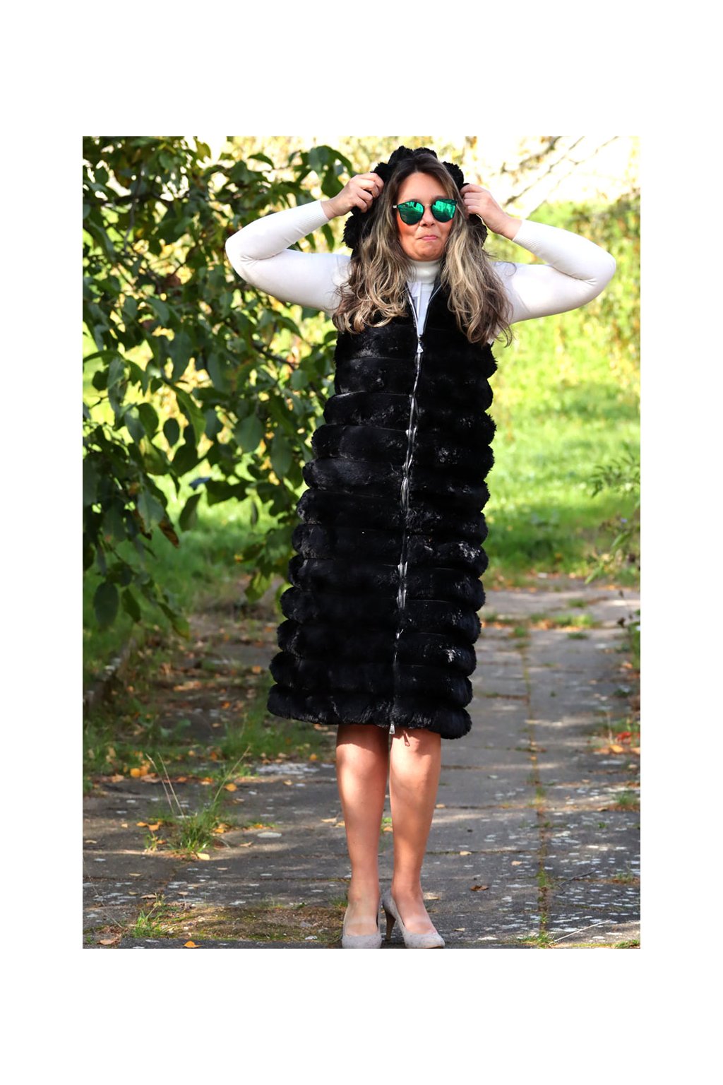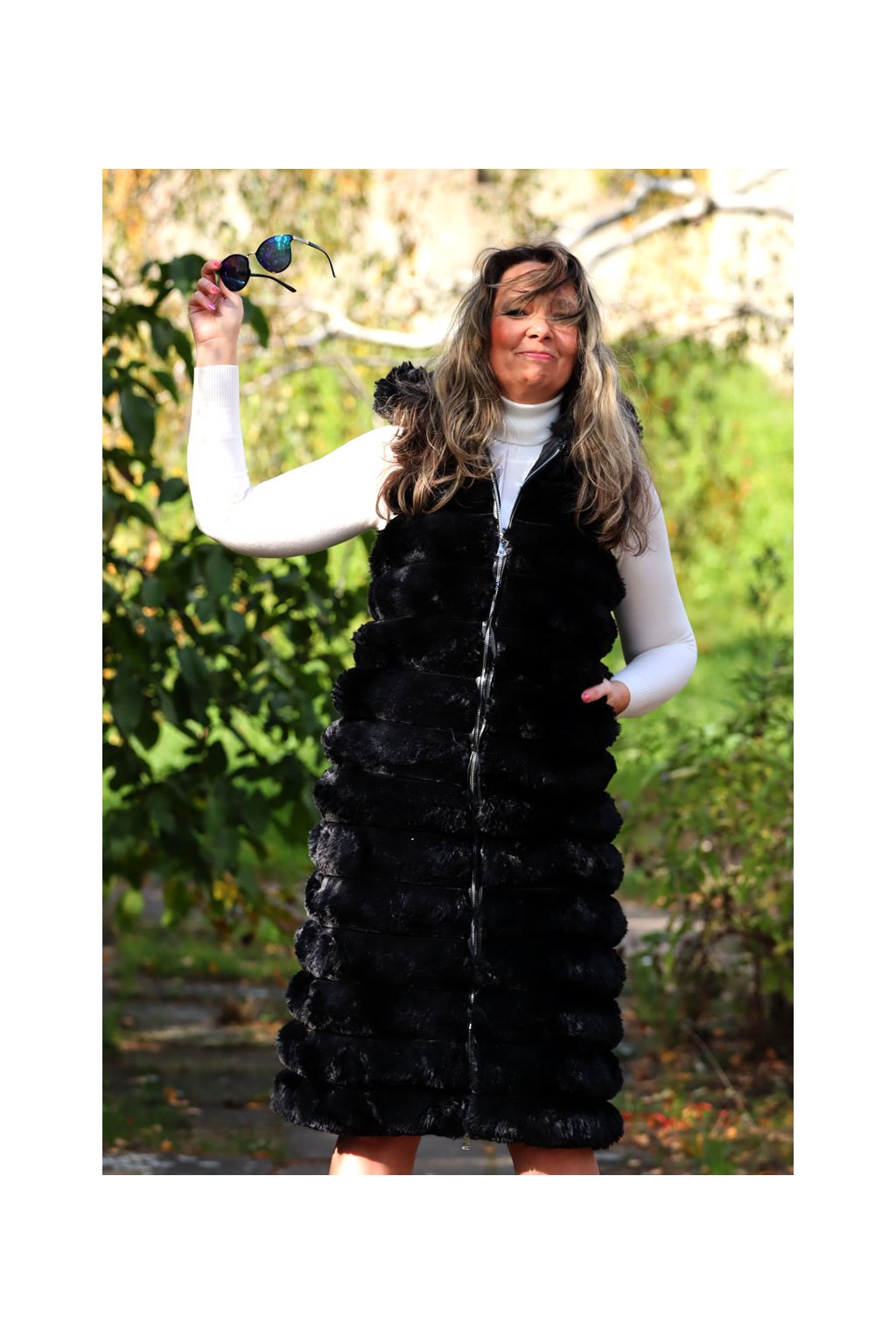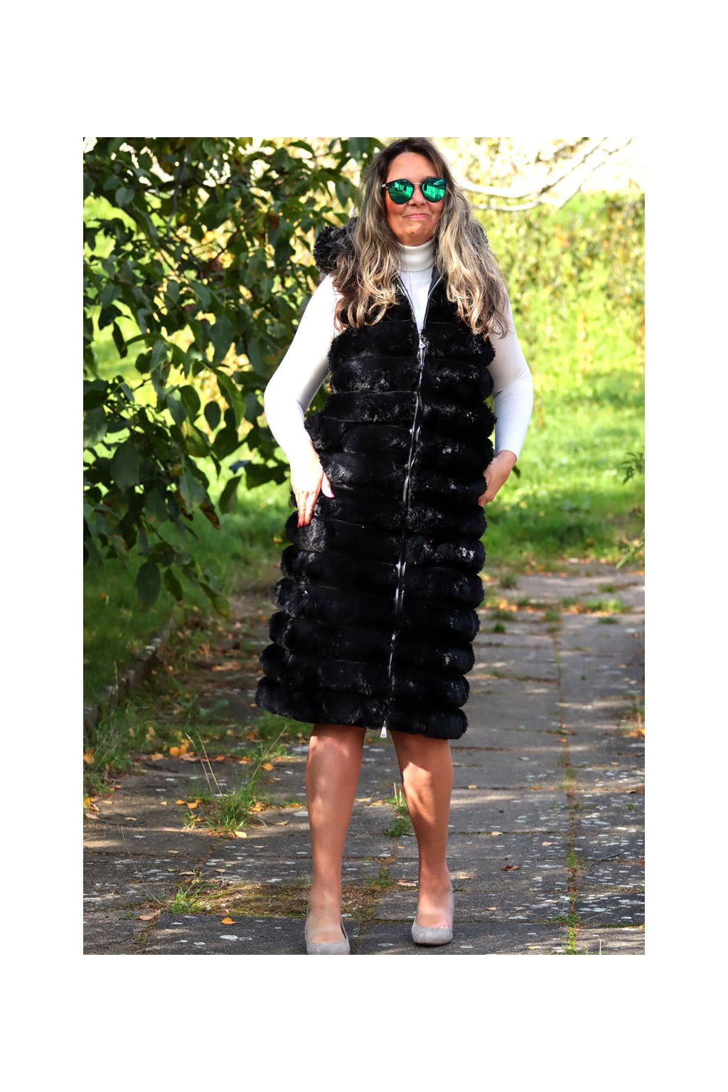 Dámská černá dlouhá chlupatá vesta / FOLLOW YOUR / S/L (36/38/40) prsa do 98 cm / MODA ITALY