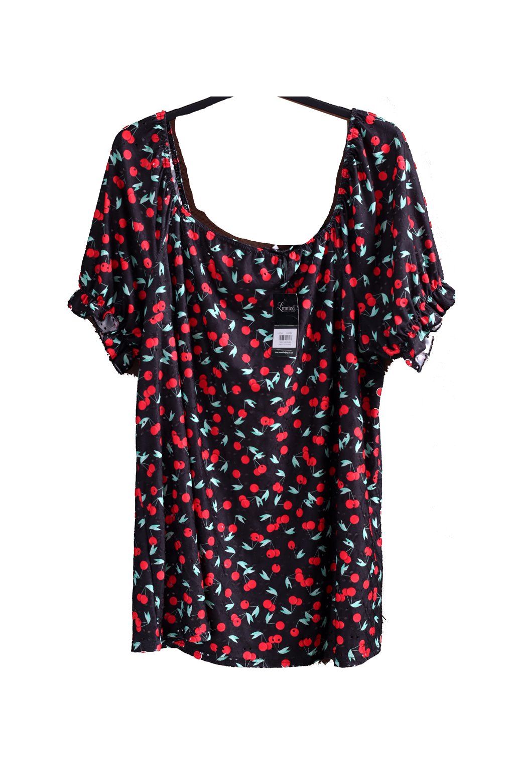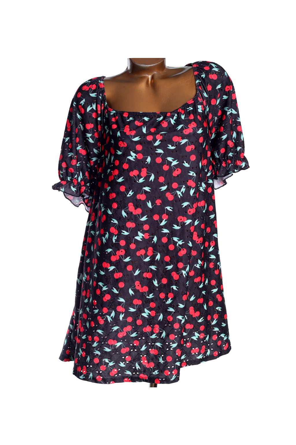 Dámská černá elastická halenka či šaty se vzorem třešní / LIMITED COLLECTION /XXXXL (52) / UK 24 / ANGLIE