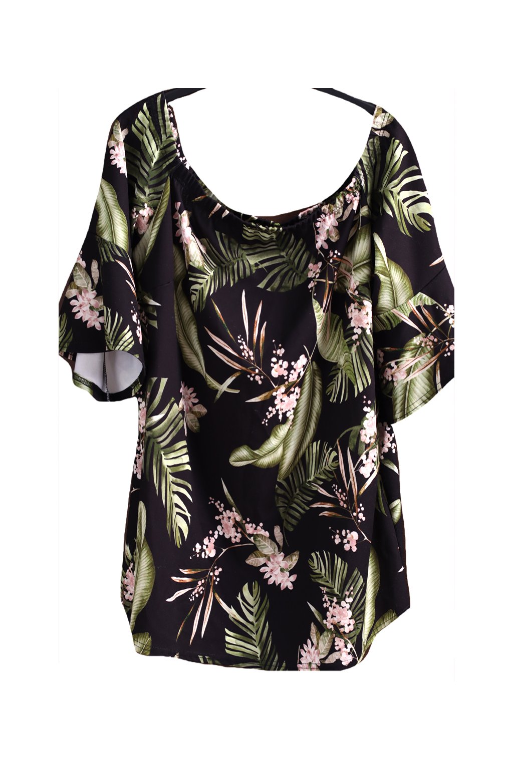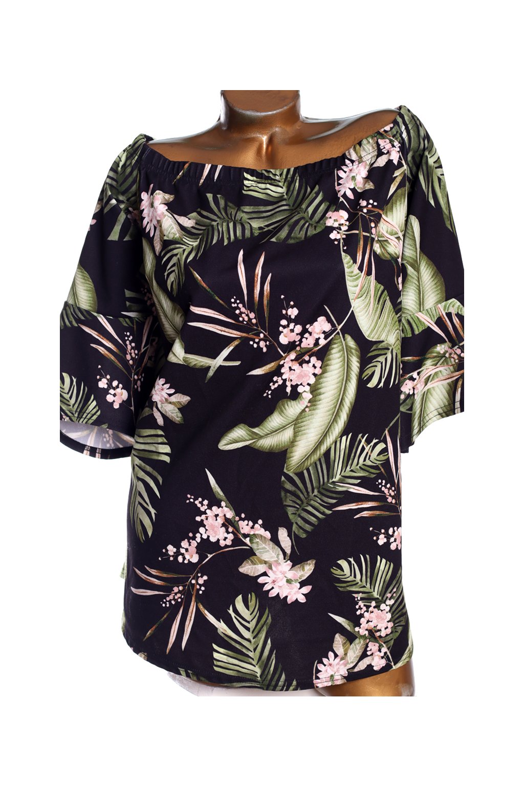 Dámská černá elastická halenka s květy / YOURS / XXXXL (52/54) / UK 22/24 ANGLIE