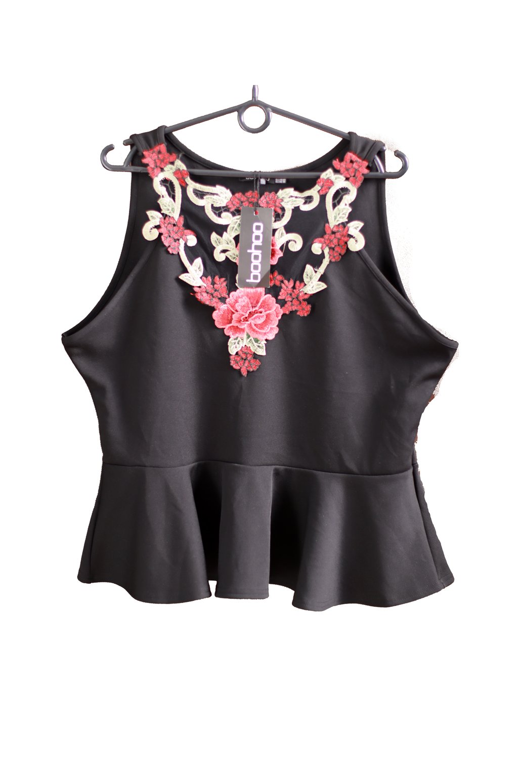 Dámská černá elegantní halenka s barevnou výšivkou / BooHoo - XXL/XXXL (46/48) / ANGLIE