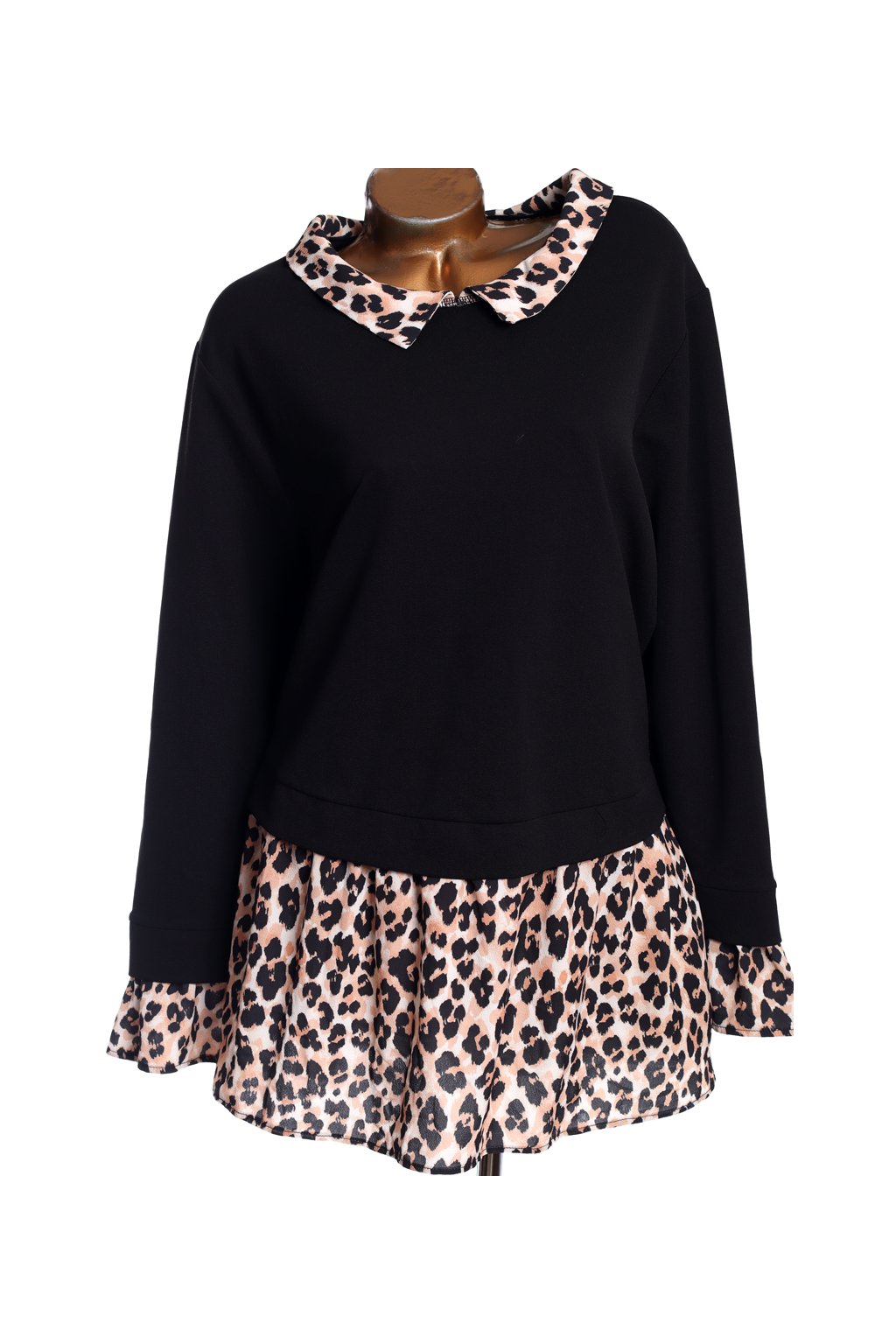 Dámská černá halenka s leopardí košilí 2v1 / YOURS / XXXXL (54/56) / UK 26/28 / ANGLIE