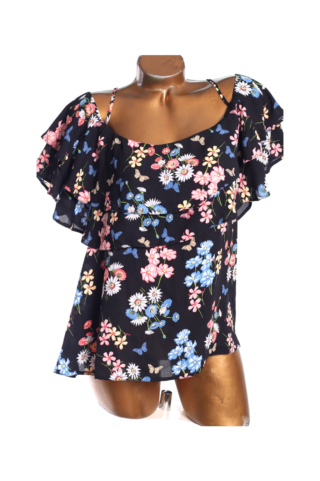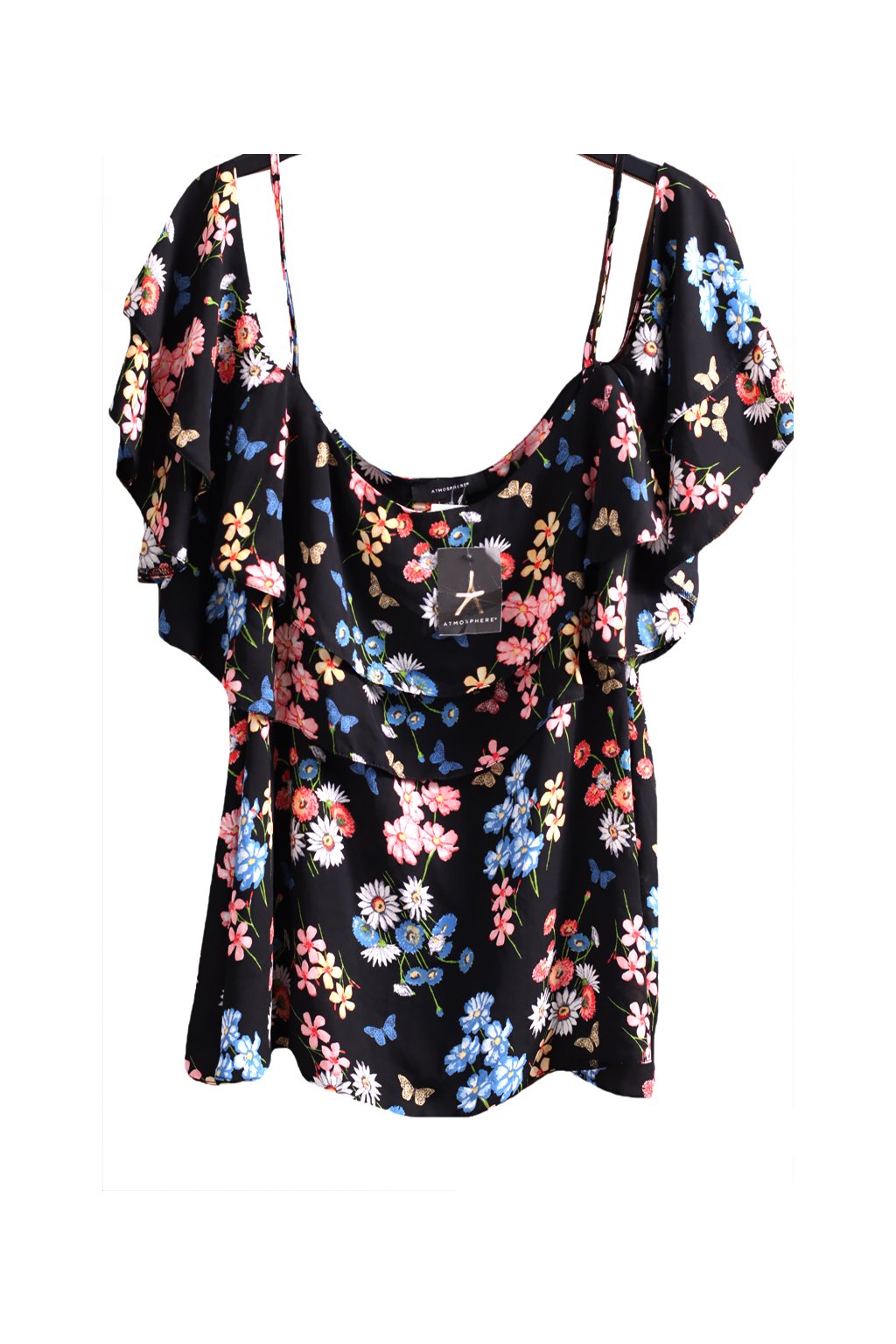 Dámská černá halenka s barevnými květy a volány / Atmosphere - XXL (46) / UK 18 / ANGLIE