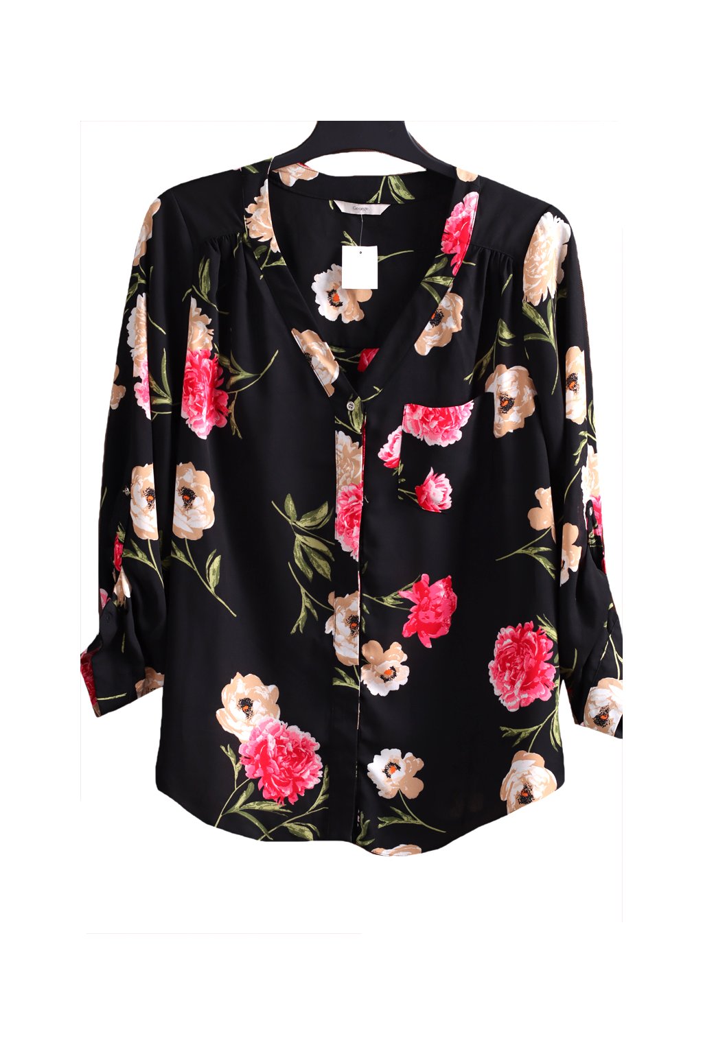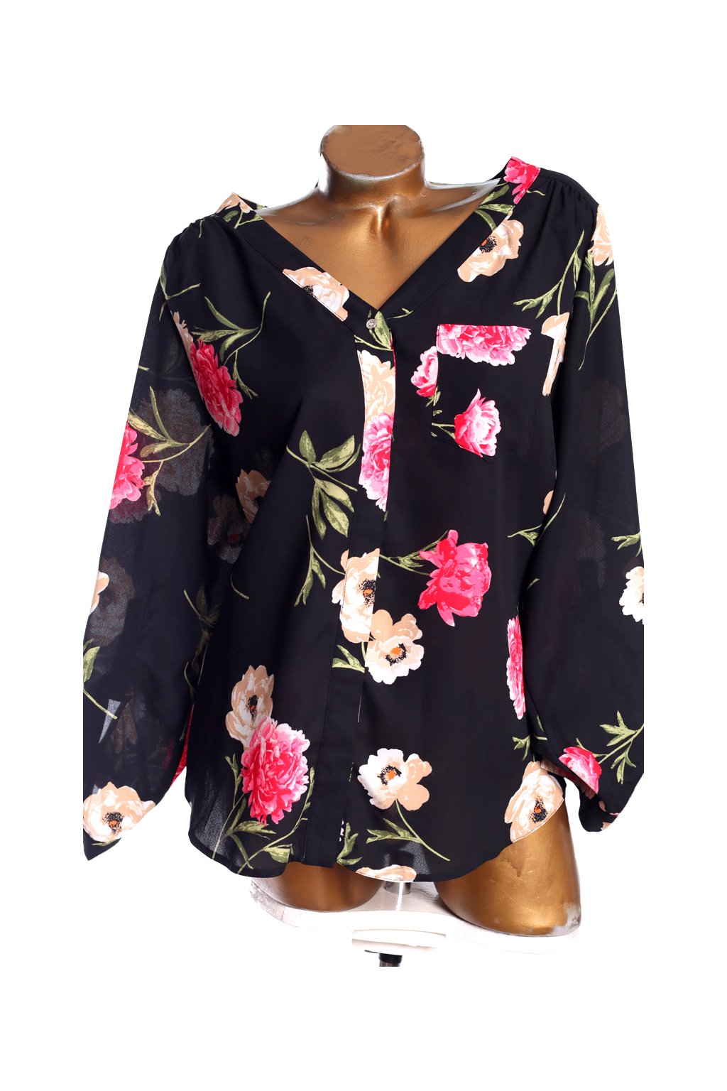 Dámská černá halenka s béžovo-růžovými pivoňkami / GEORGE / XXXL (50) / UK 22 / ANGLIE