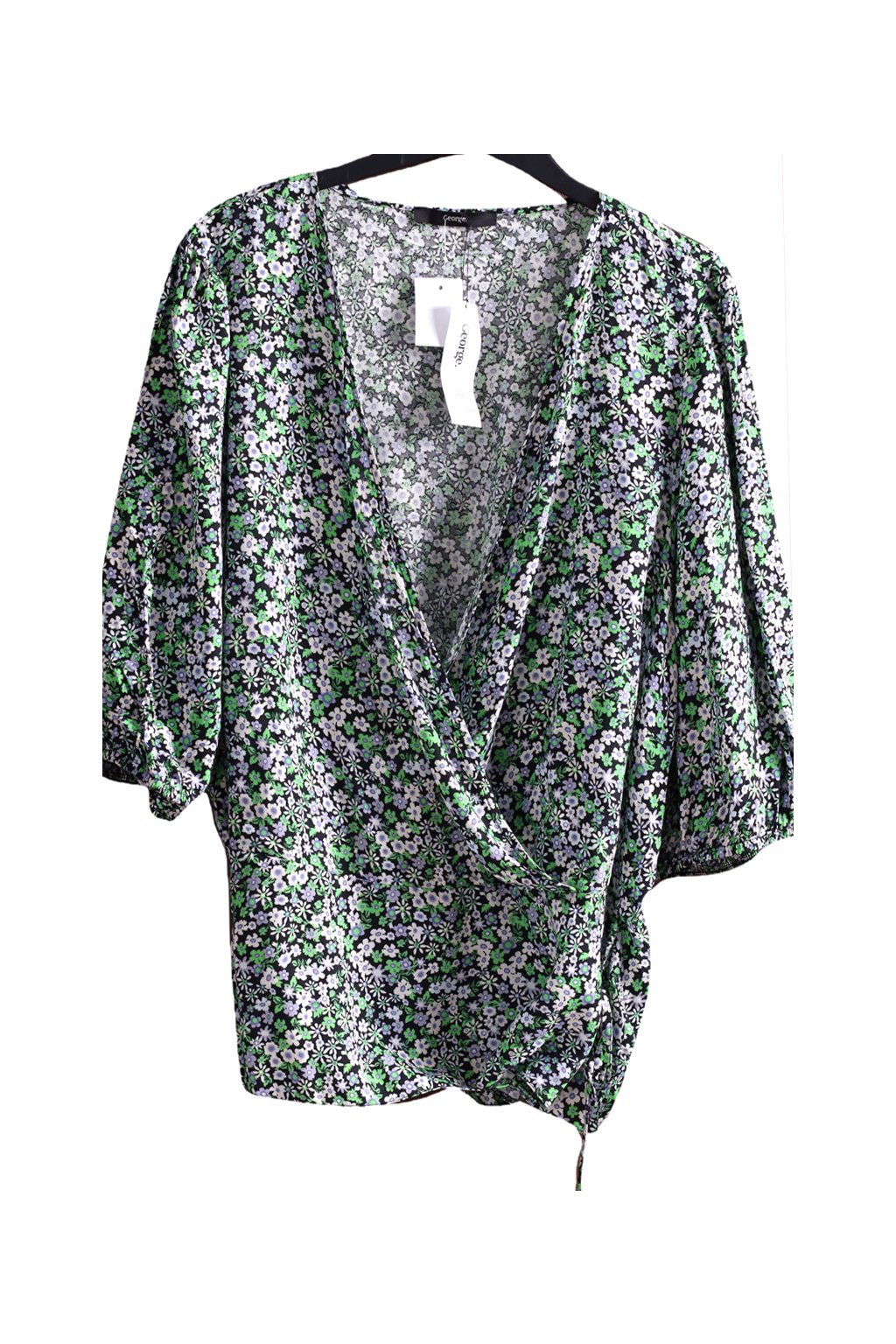 Dámská černá halenka s bílo-zeleno-fialovými květy / GEORGE / XXXL (50) / UK 22 / ANGLIE