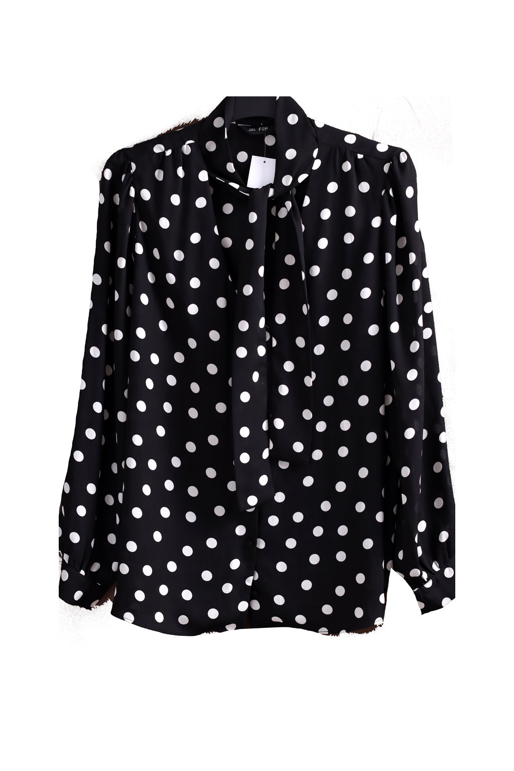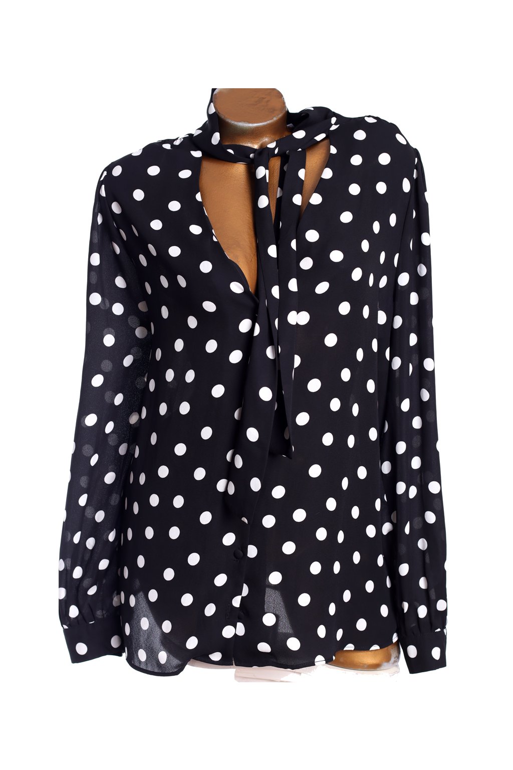 Dámská černá halenka s bílými puntíky na zavazování / F&F / XXXL (48/50) / UK 22 / ANGLIE