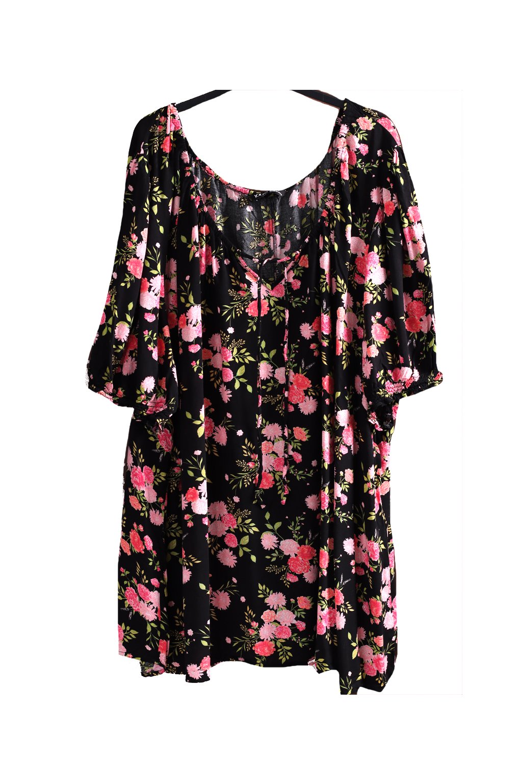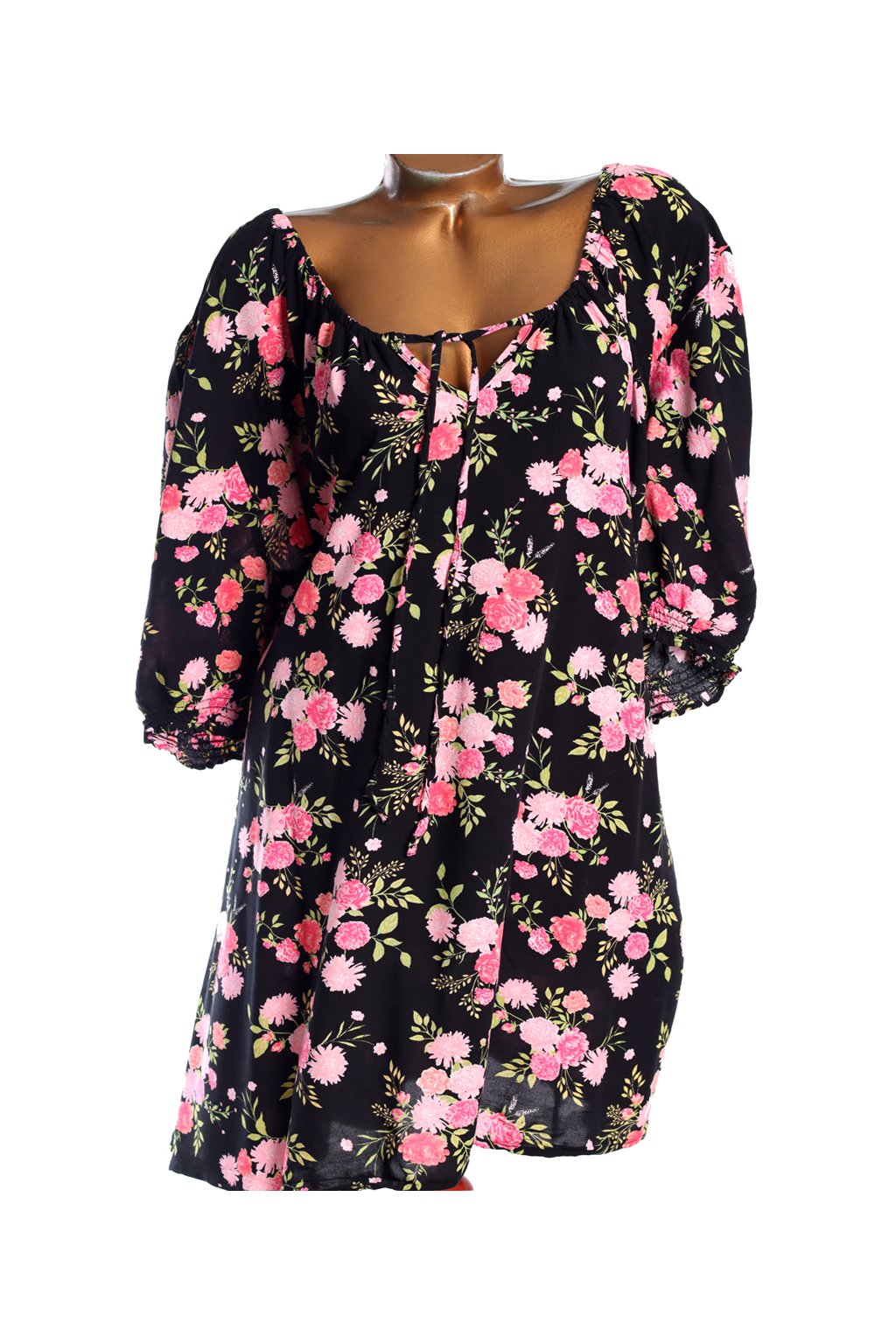Dámská černá halenka s růžemi / YOURS / (66/68 ) / UK 38/40 / ANGLIE
