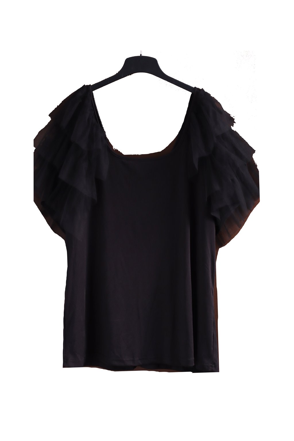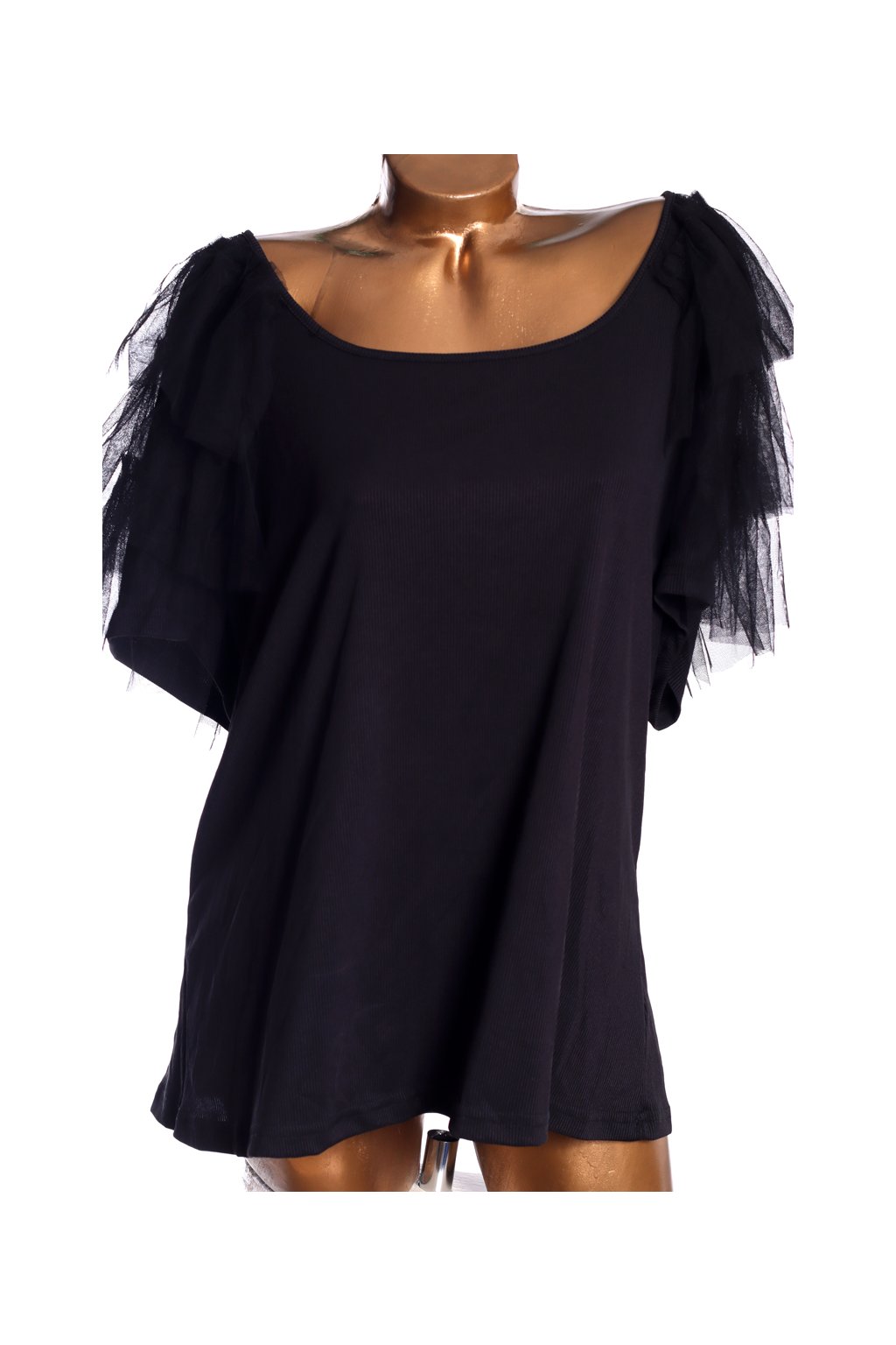 Dámská černá halenka s tylem na rukávy / XXXL (50) / UK 22 / ANGLIE
