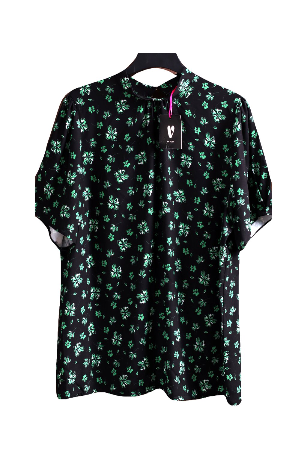 Dámská černá halenka se zeleno-bílými květy / BY VERY / XXXL (48) / UK 20 / ANGLIE