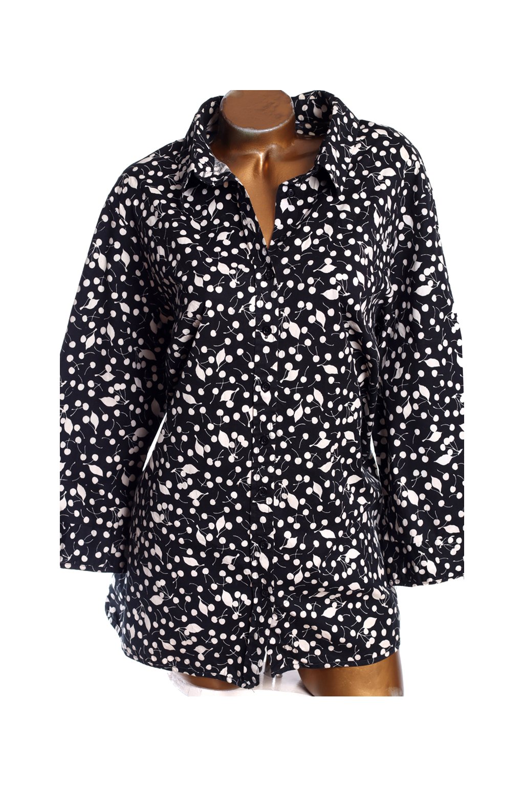 Dámská černá košile s bílými vzory / ESSENCE / XXXL (58) / UK 30 / ANGLIE