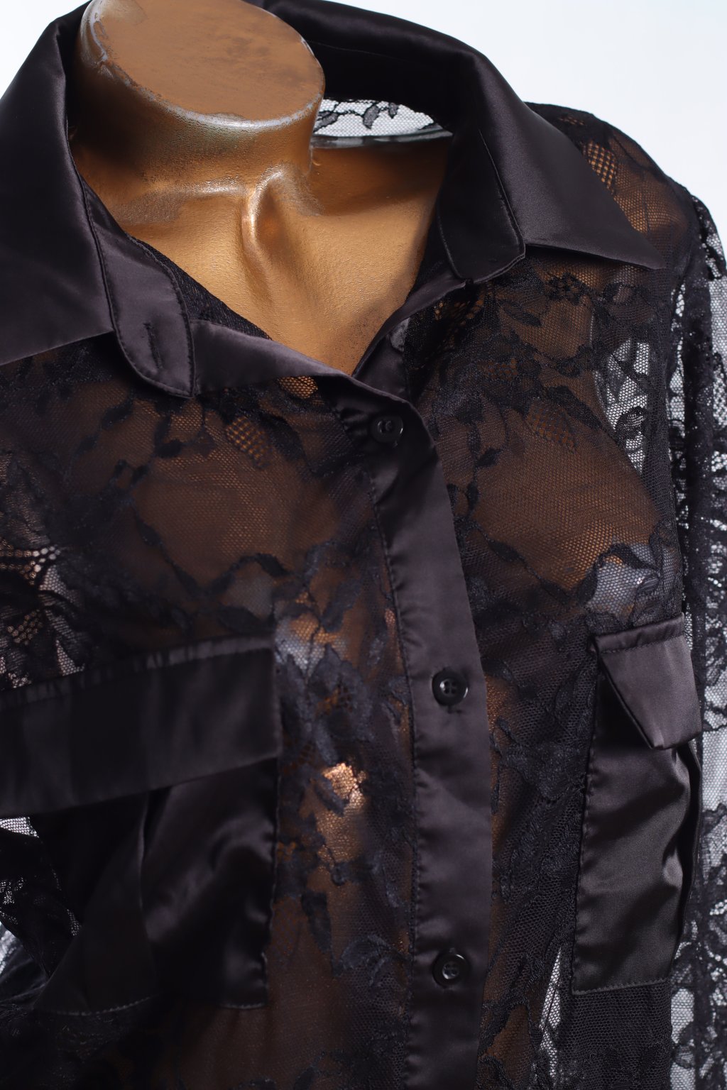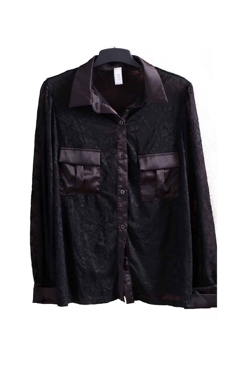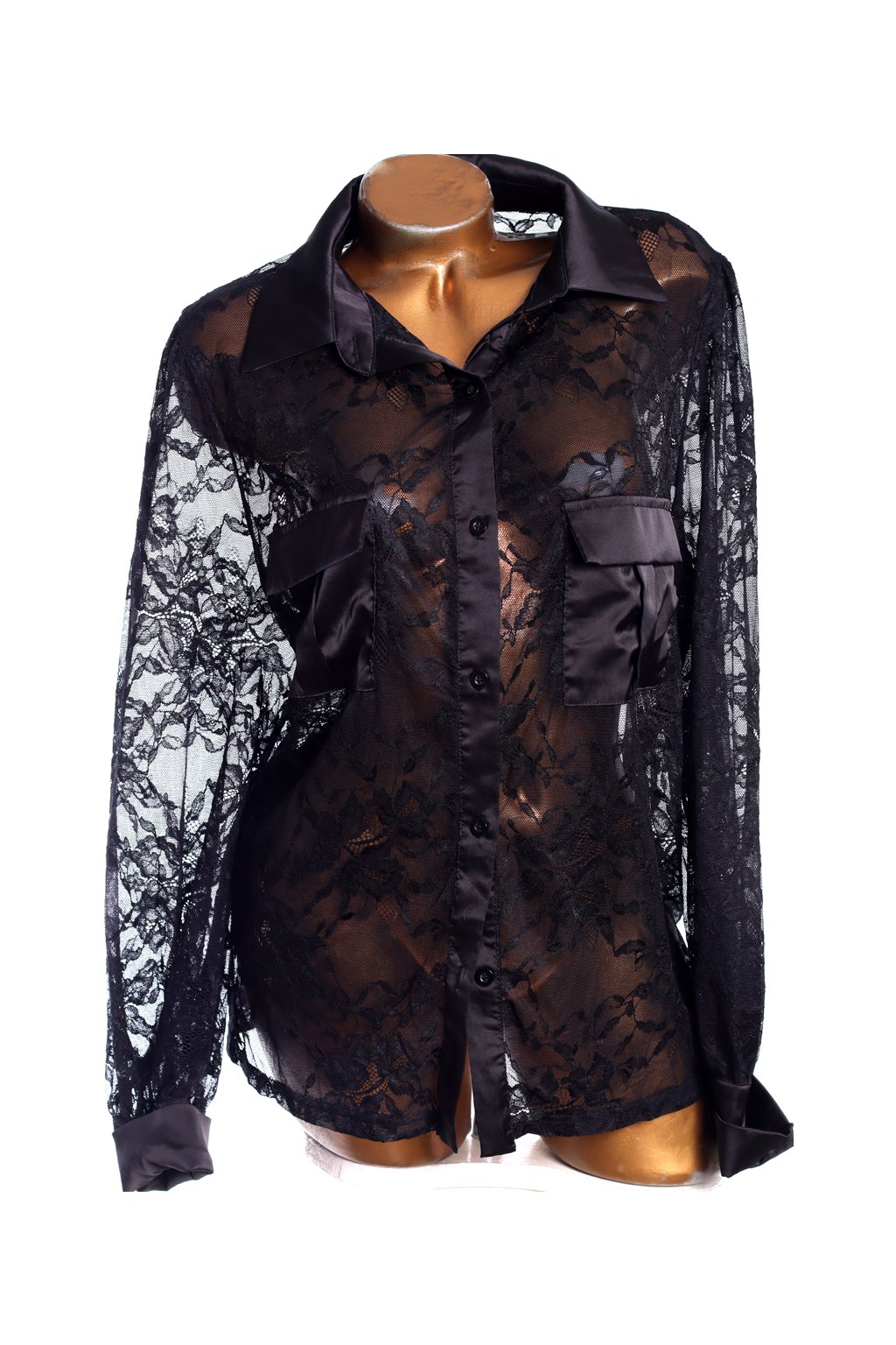 Dámská černá elastická krajková košile / XXXXL (50) / UK 22 / ANGLIE