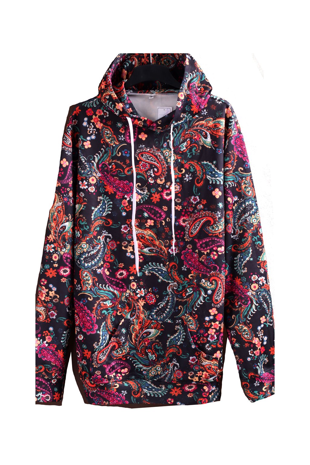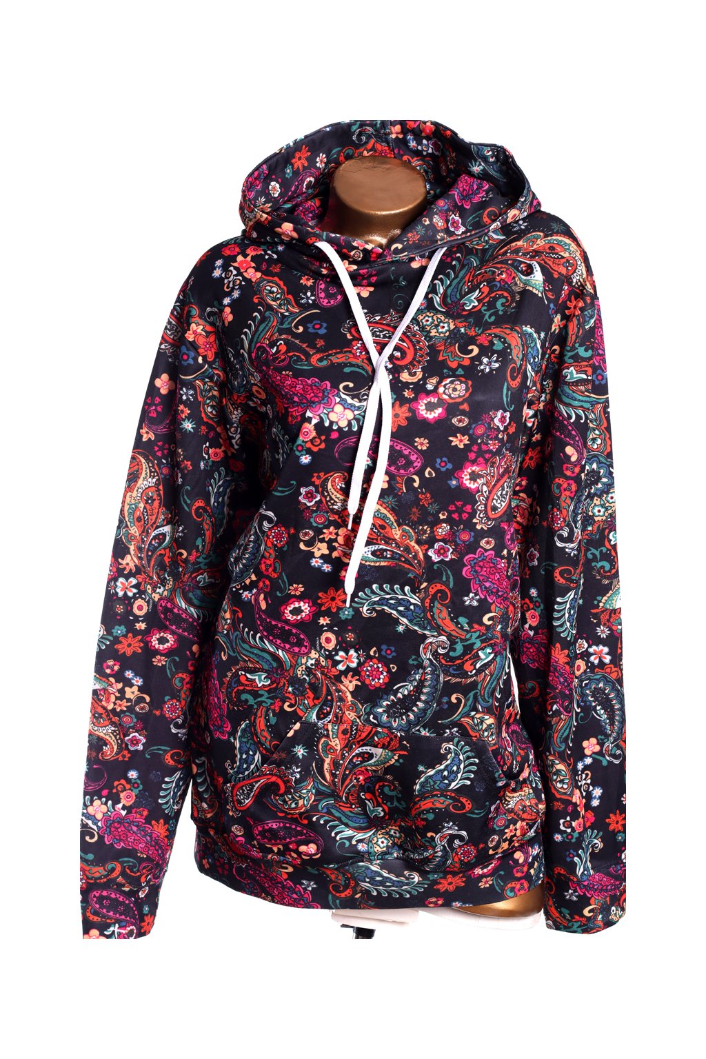 Dámská černá mikina s barevnými květinovými vzory / XXL (44/46) / UK 16/18 ANGLIE