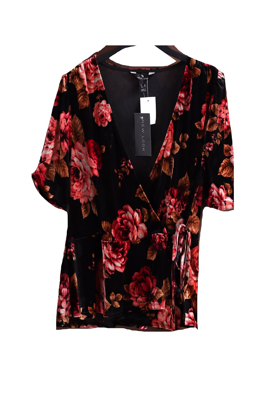 Dámská černá semišová halenka s růžemi / NEW LOOK / XXXXL (46) / UK 18 / ANGLIE
