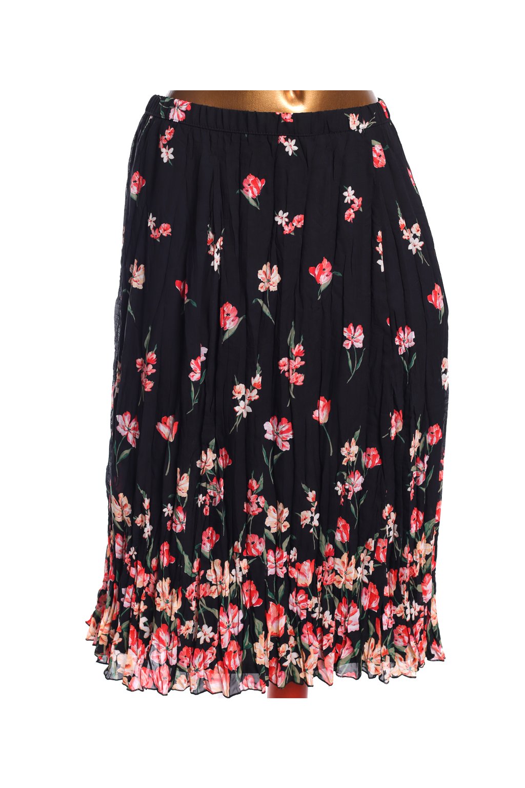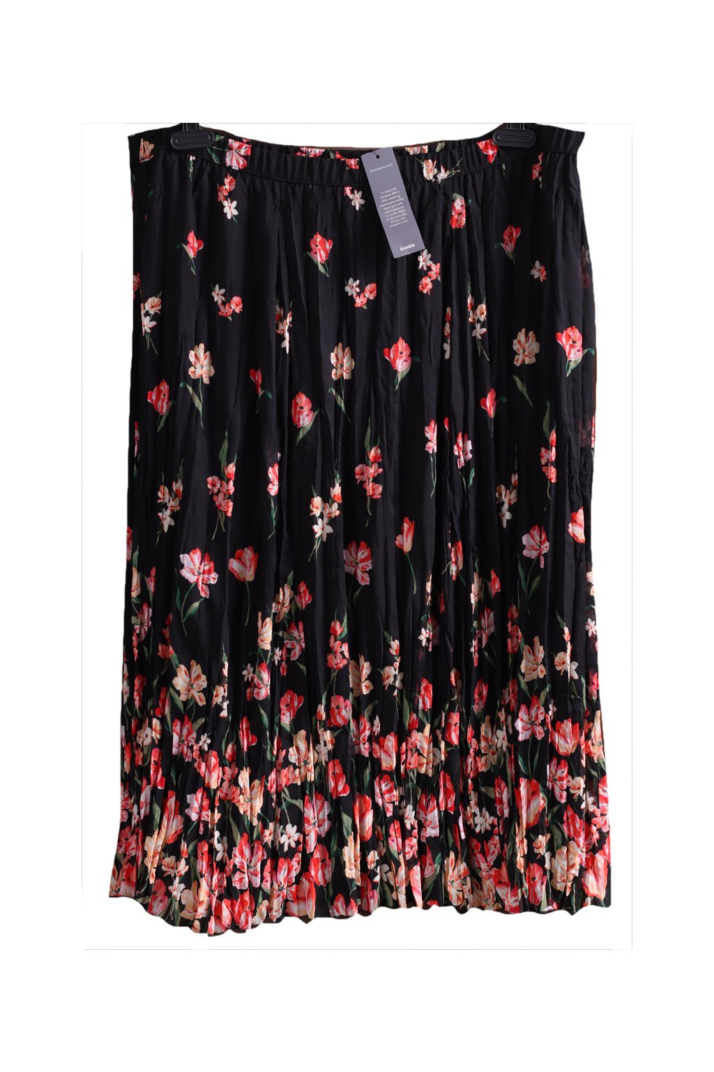 Dámská černá sukně s květy - pas na gumu /BONMARCHÉ / XXXL (50) / UK 22 / ANGLIE