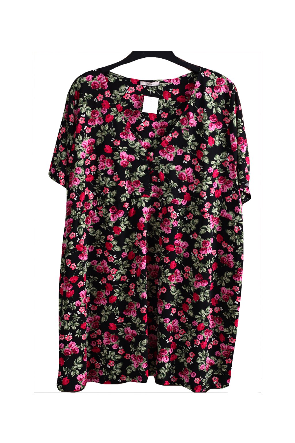 Dámská černá tunika s růžovými květy / TU / XXXL (50) / UK 22 / ANGLIE