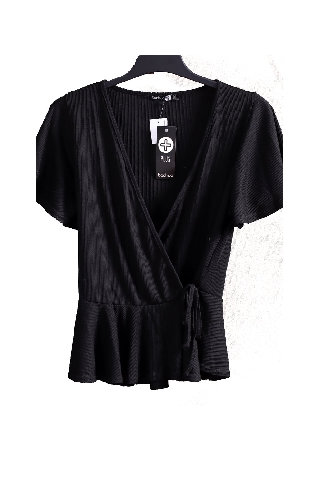 Dámská černá žebrovaná zavinovací halenka / BooHoo - XXL (46)/ UK 18 / ANGLIE