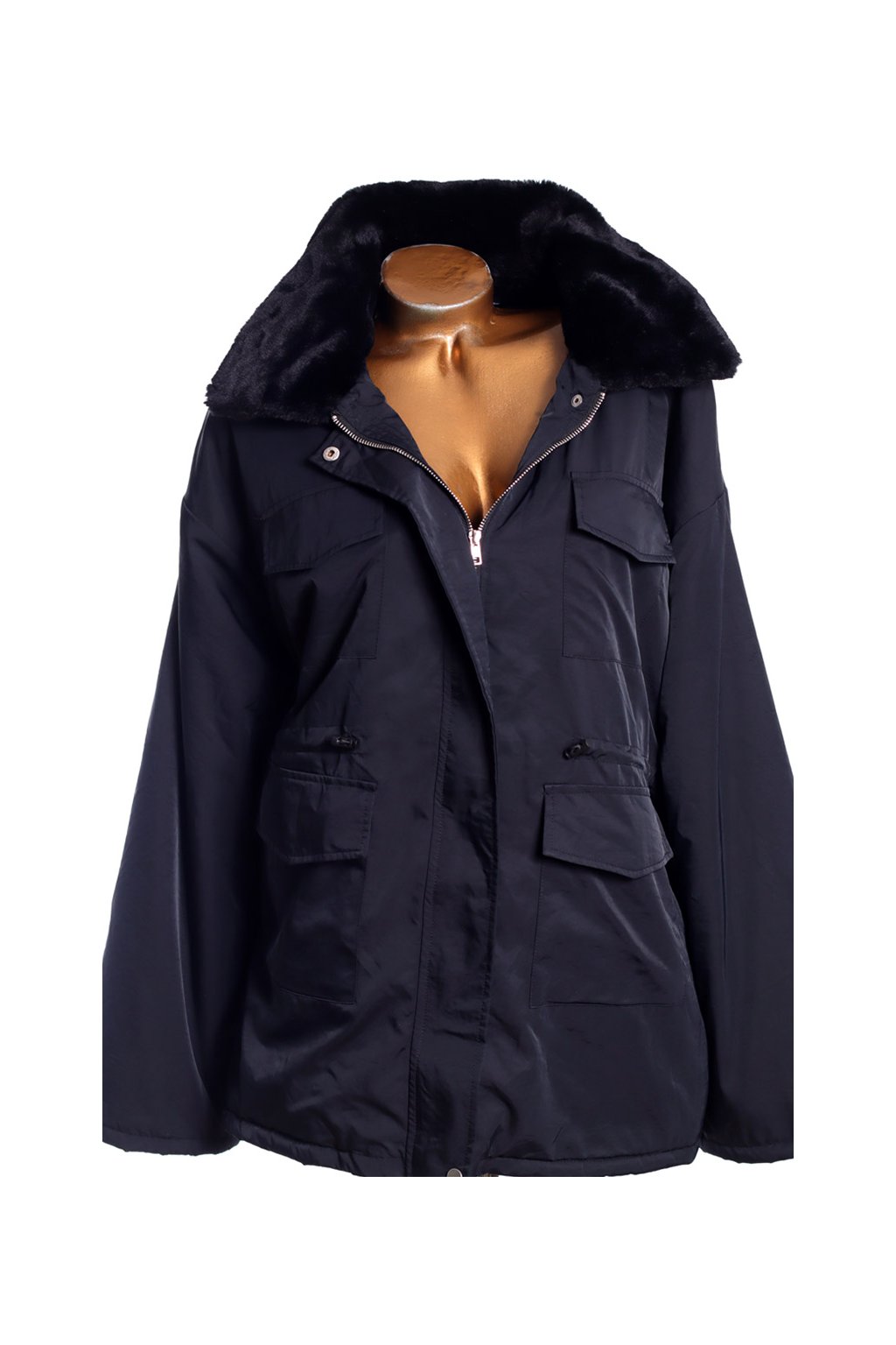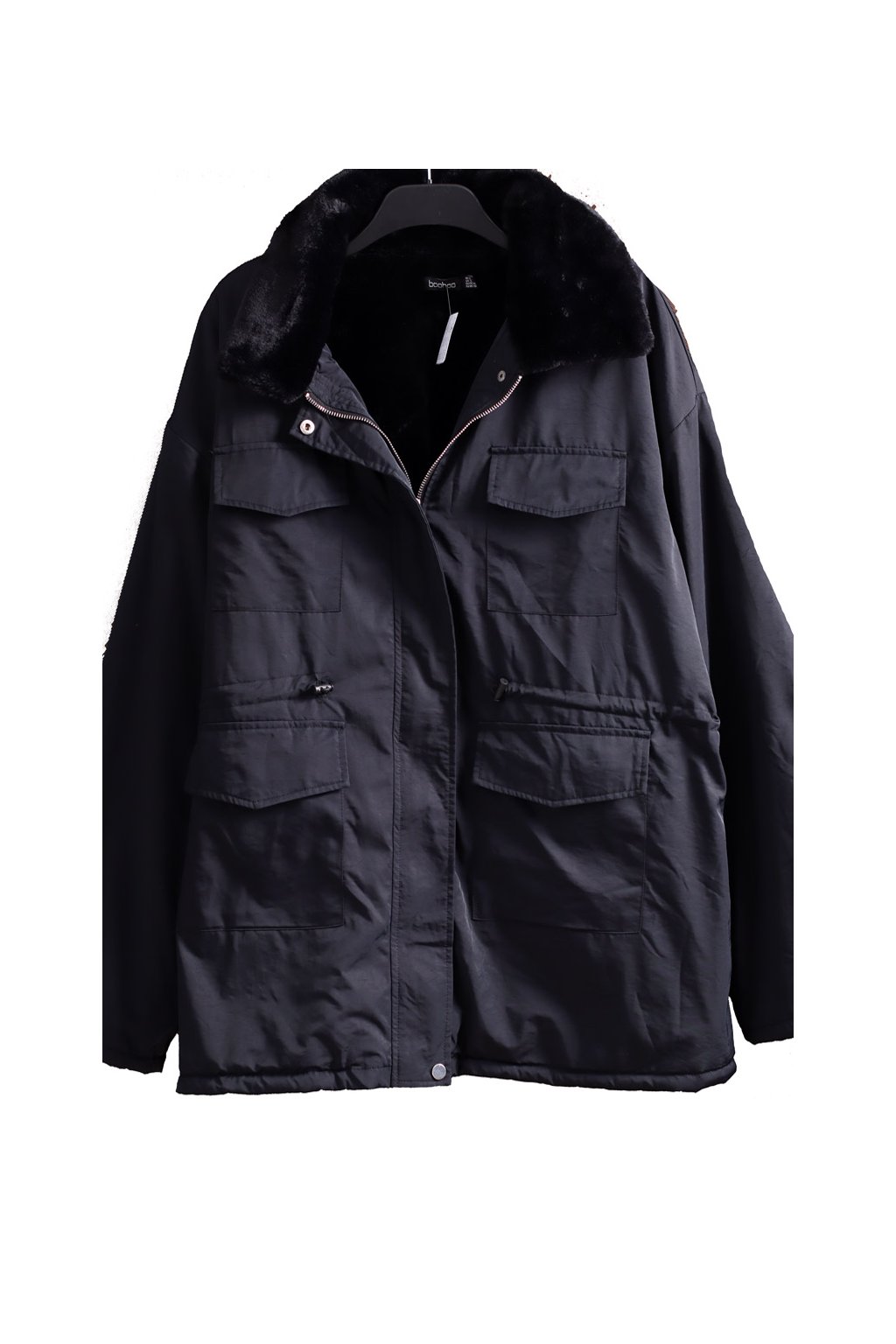 Dámská černá zimní bunda zateplená kožíškem / BOOHOO / XXXL (50) / ANGLIE (22)