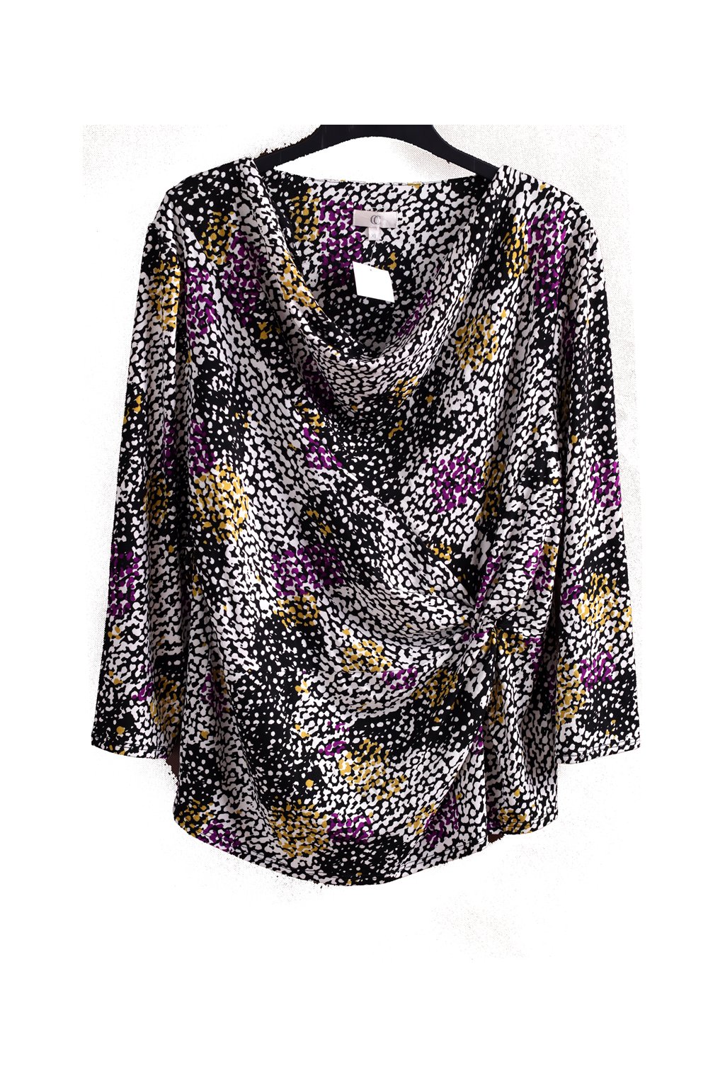 Dámská černo-bílo-fialovo-žlutá vzorovaná halenka / CC / XXL (44/46) / UK 16/18 / ANGLIE