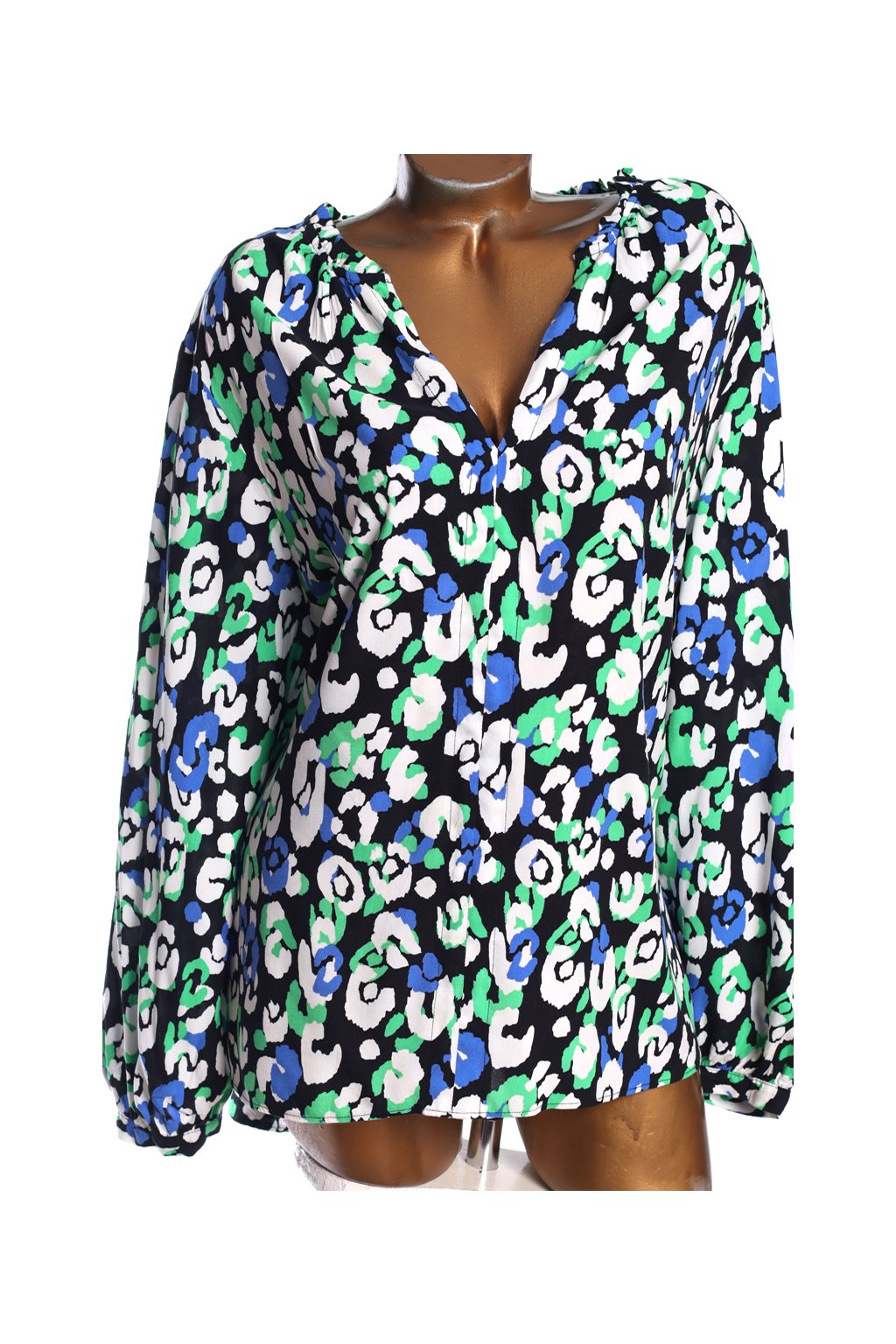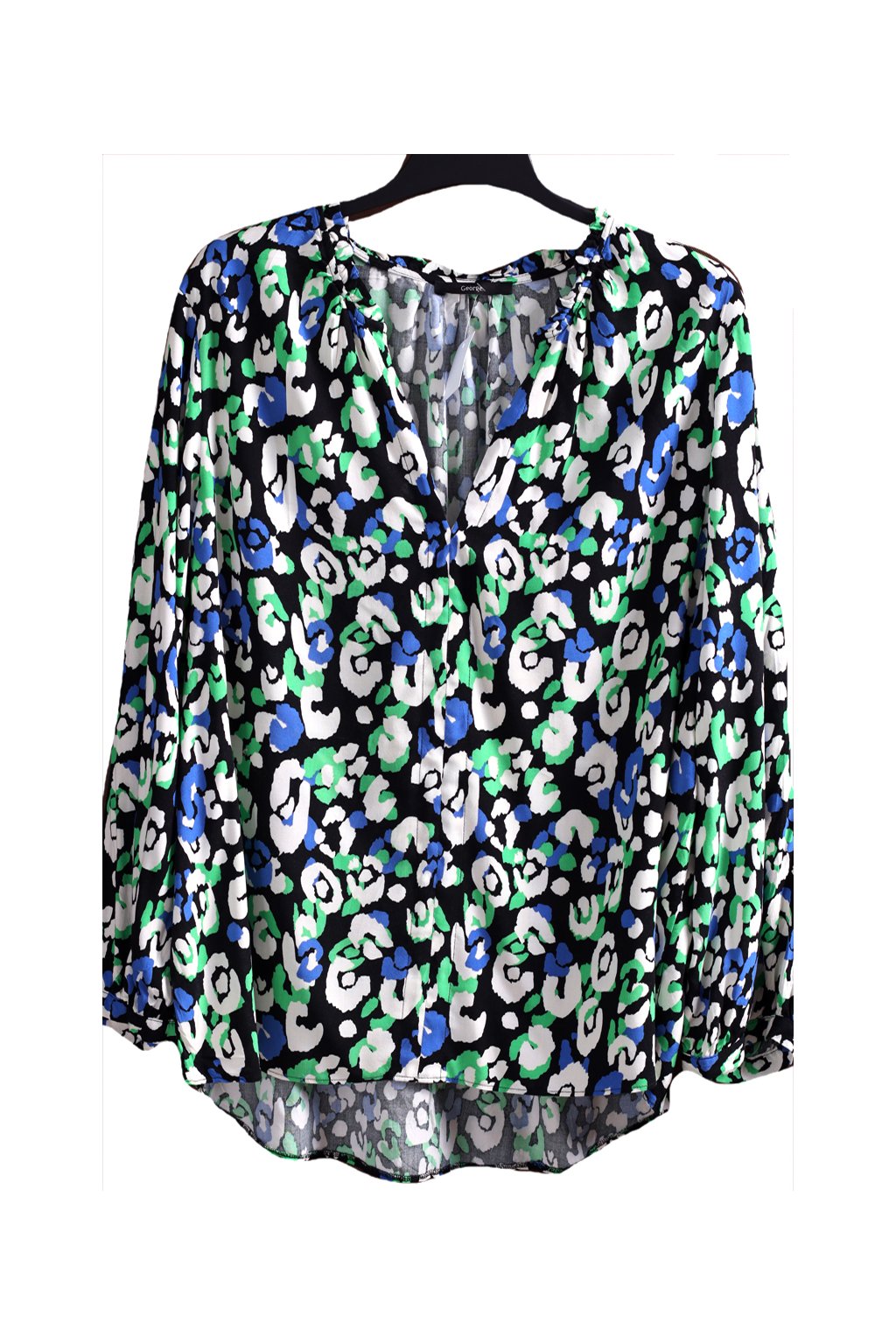 Dámská černo-bílo-modro-zelená vzorovaná halenka /GEORGE/ XXXXL (52) / UK 24 / ANGLIE