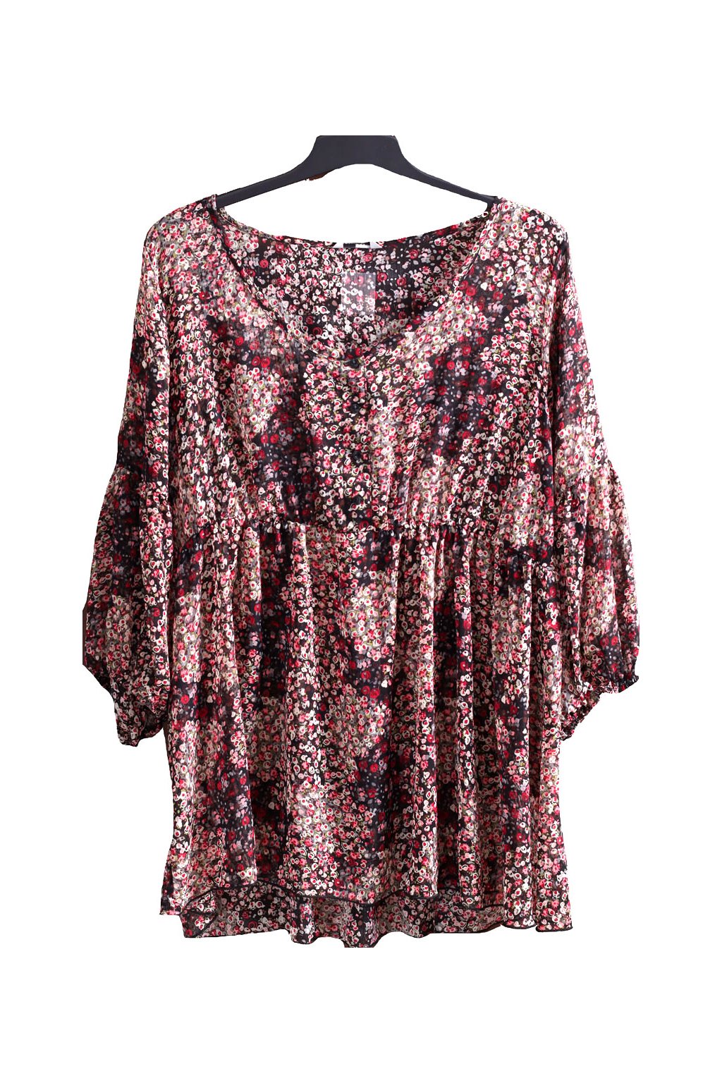 Dámská černo-červeno-šedá tunika s knoflíky / ROGERS+ROGERS / XXXL (50) / UK 22 / ANGLIE