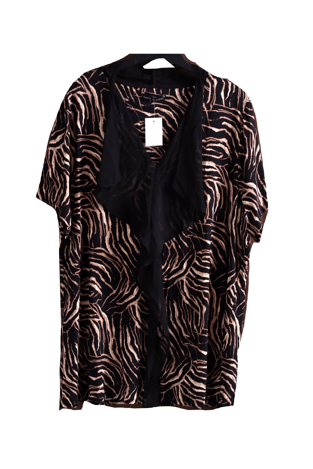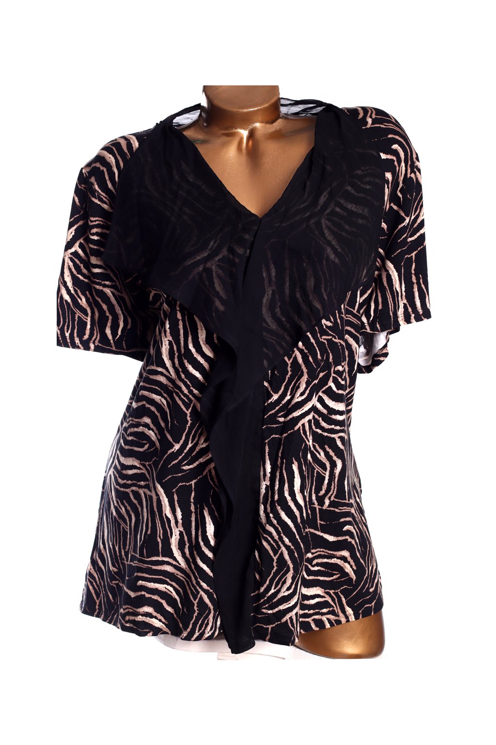 Dámská černo-hnědá vzorovaná halenka s volánky / DAVID EMANUEL / XXXXL (52) / UK 24 / ANGLIE