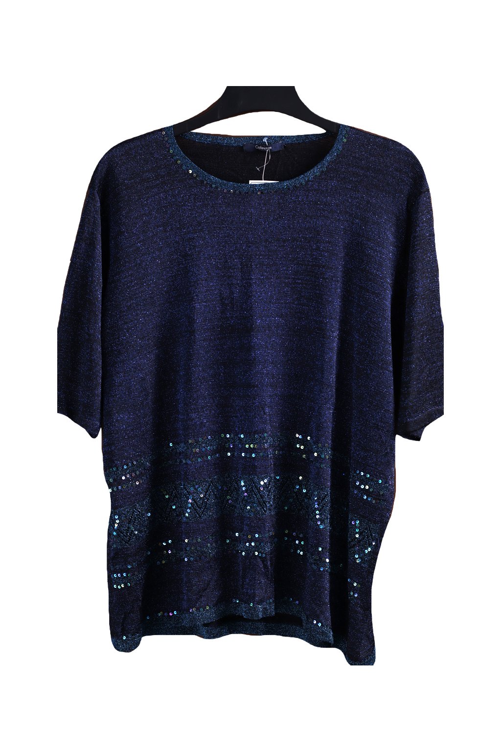 Dámská černo-modrá třpytivá flitrovaná halenka / COLLECTION / XXXL (48/50) / UK 20/22 / ANGLIE