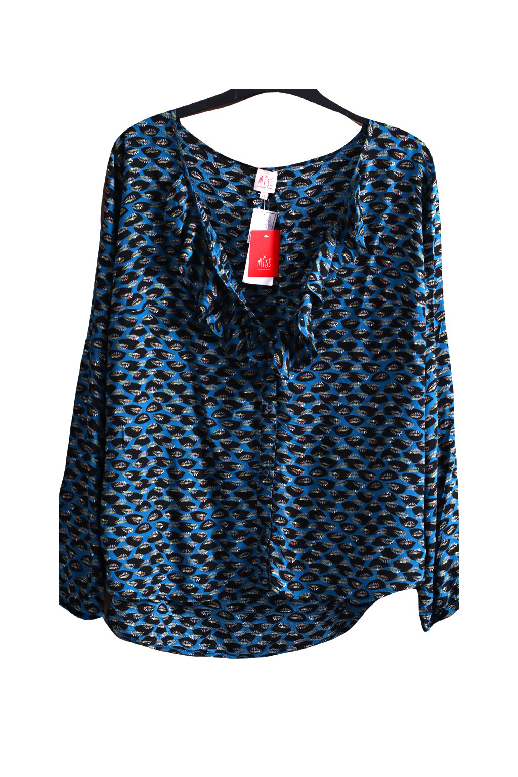 Dámská černo-modrá vzorovaná halenka s lístky / Miss / XXXL (46) / UK 18 / ANGLIE