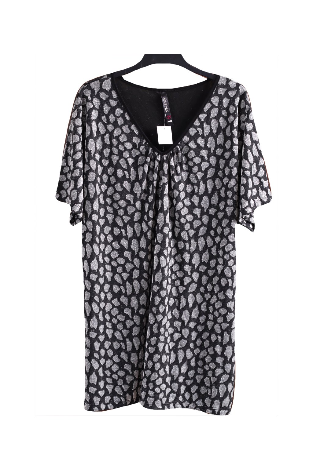 Dámská černo-šedá vzorovaná třpytivá tunika / IVANS / XXXXL (58-60) / UK 30-32 / ANGLIEE