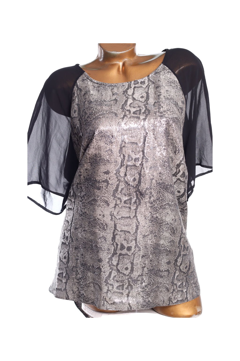 Dámská černo-stříbrná halenka s motivem hadí kůže / SIMPLY BE / XXXXL (52) / UK 24 / ANGLIE