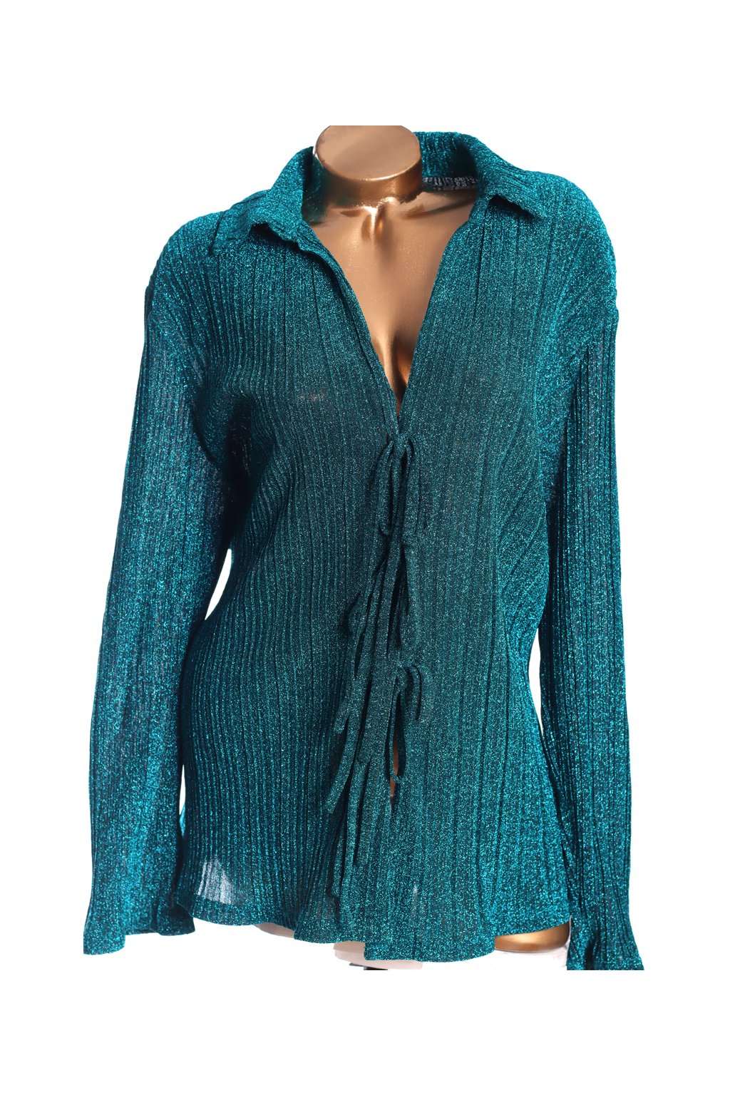 Dámská značková černo-tyrkysová třpytivá halenka se zavazováním vepředu / QED LONDON / XXXL (50) / UK 22/ ANGLIE