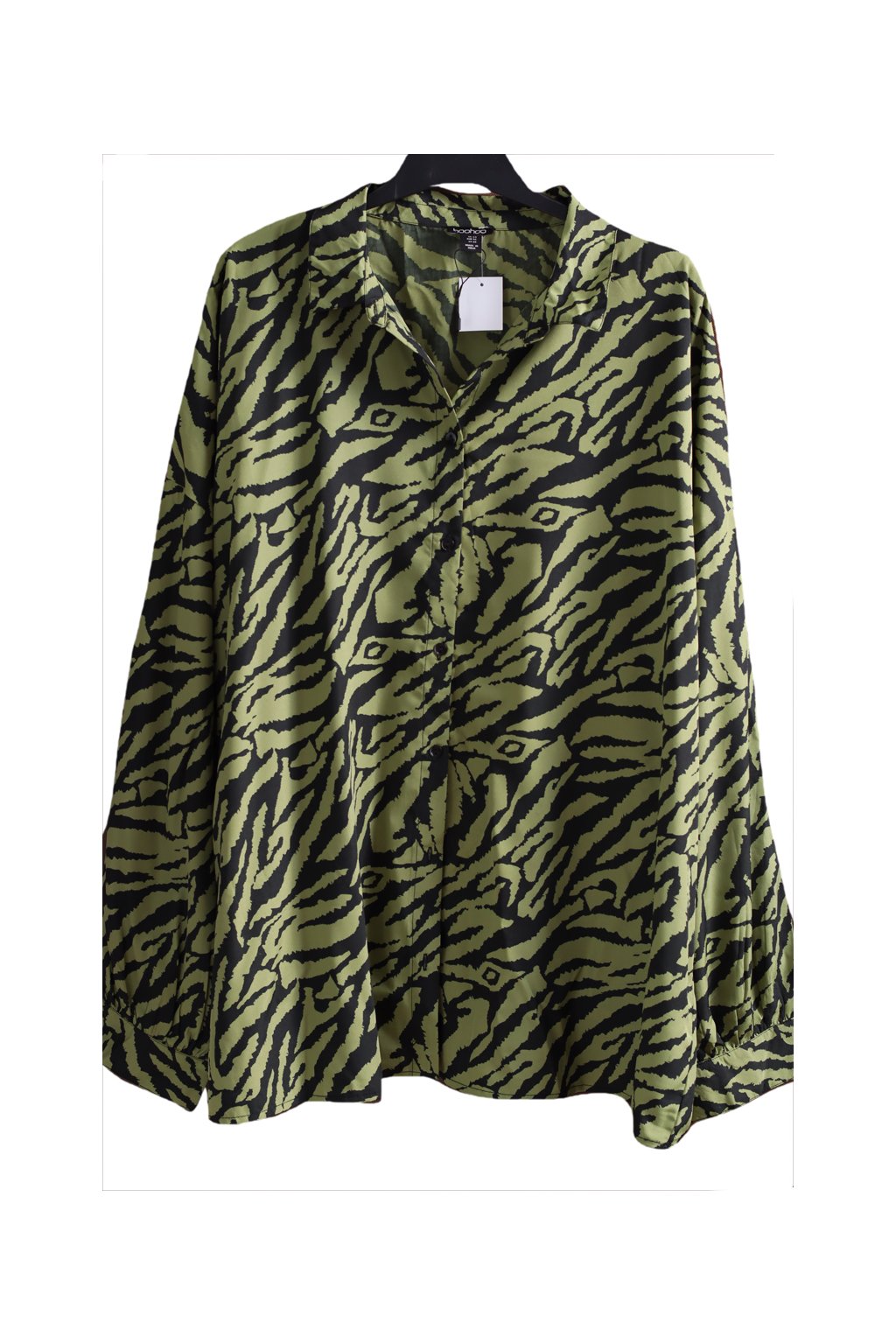 Dámská černo-zelená vzorovaná košile / BOOHOO / XXL (52) / UK 24 / ANGLIE