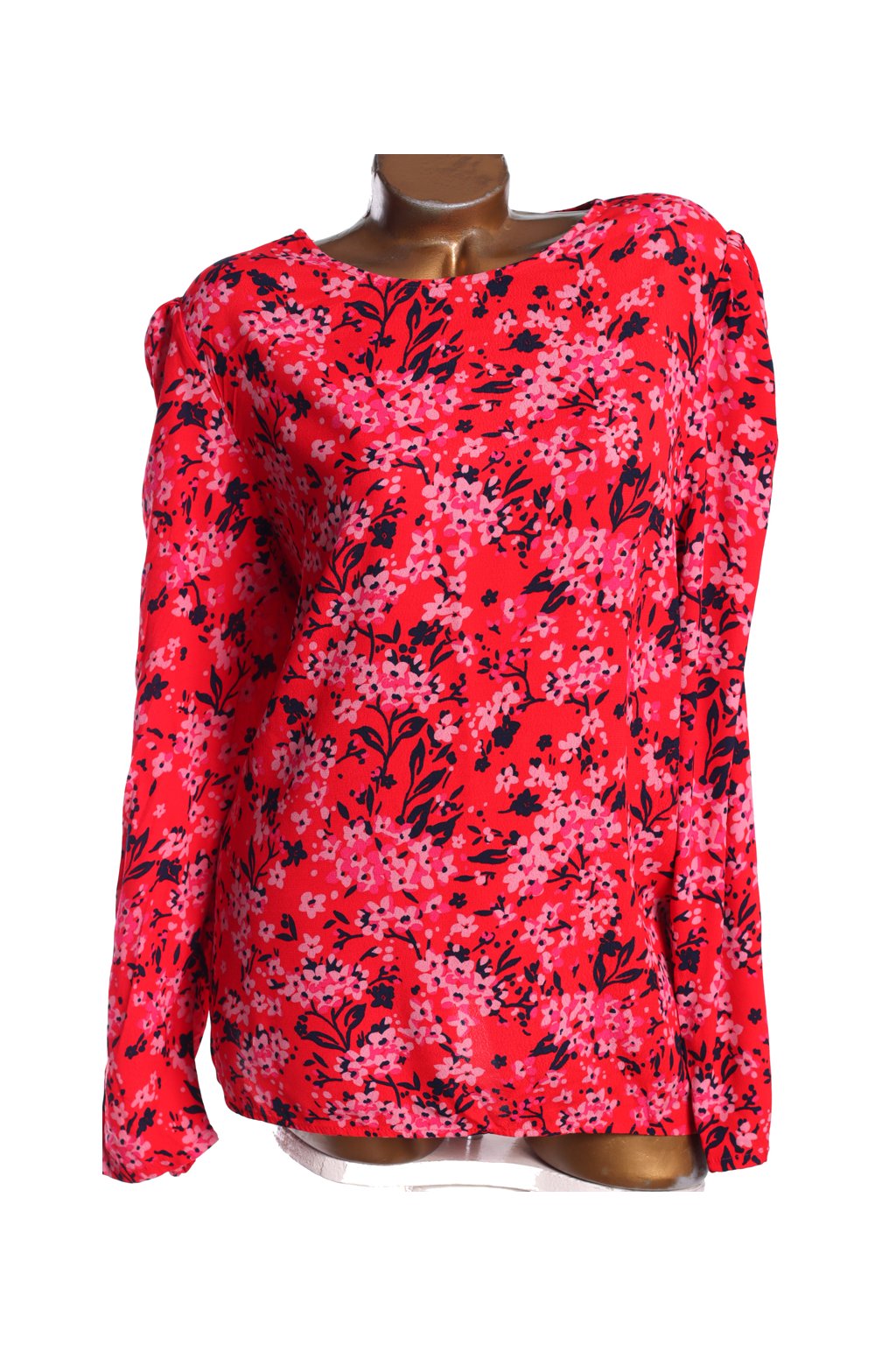 Dámská červená halenka s růžovo-černými květy / Marks & Spencer / XXXXL (52) / UK 24 / ANGLIE