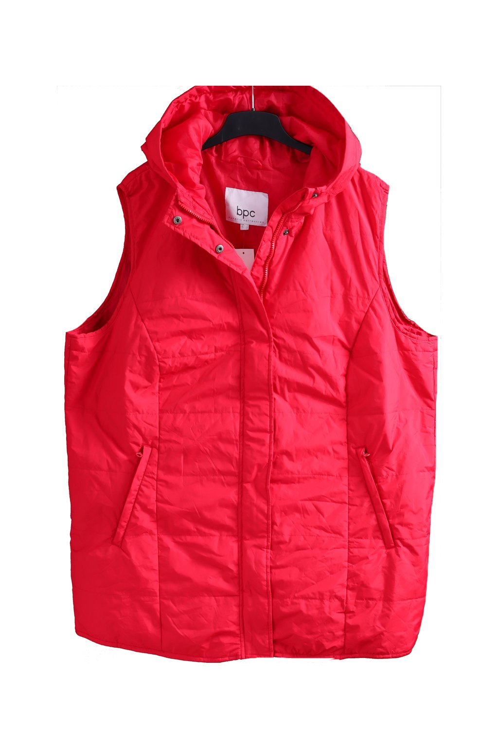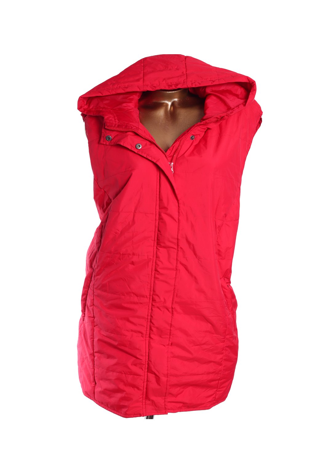 Dámská červená prošívaná vesta s kapucí / BPC / XXXXL (54-56) / UK 28 / ANGLIE