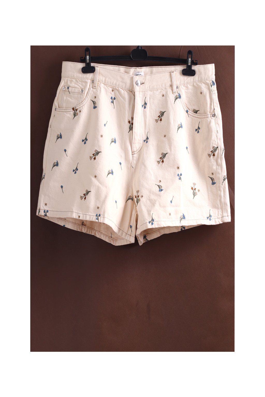 Dámské džínové béžové kraťasy s vyšitými květy / NEXT / XXXL (50) / UK 22 ANGLIE