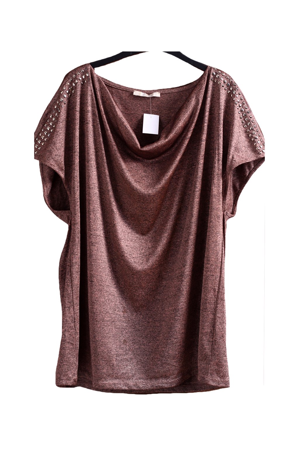 Dámská hnědo-černá žíhaná halenka s kamínky na rukávech / GEORGE / XXXXL (52) / UK 24 / ANGLIE