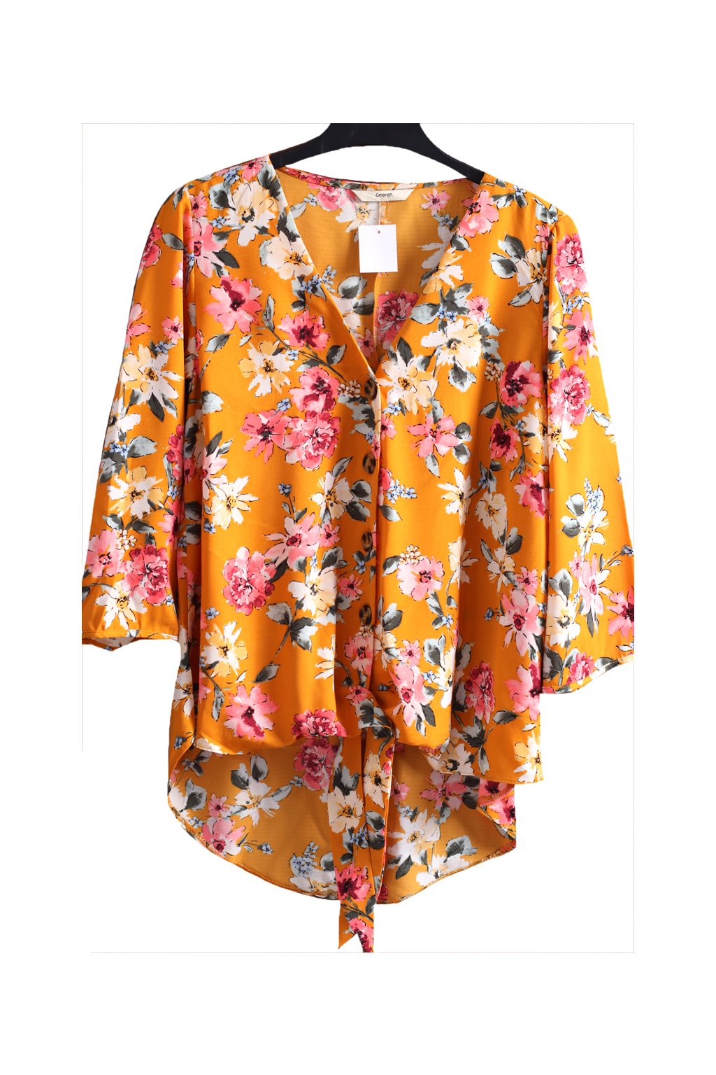 Dámská hořčicová košile s květy / GEORGE / XXL (44) / UK 16 / ANGLIE