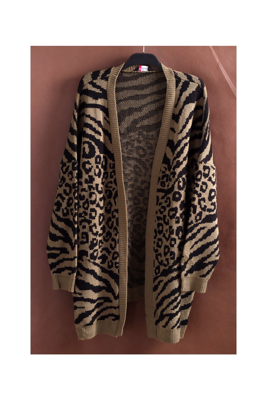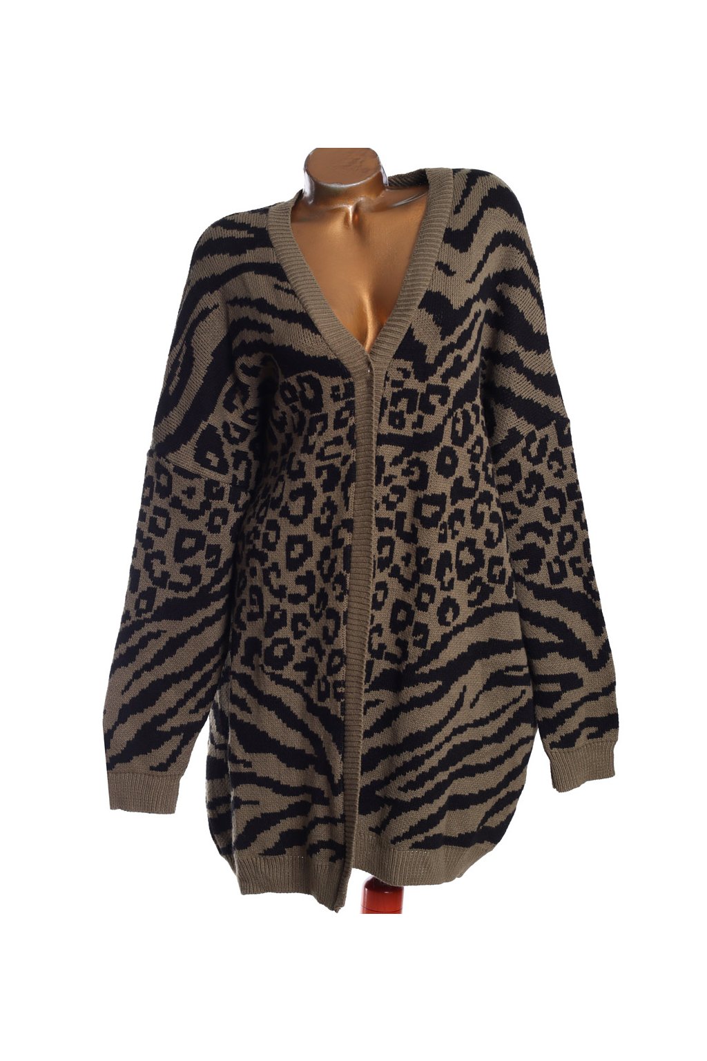 Dámský khaki s černým vzorem podzimní svetrový kabát/ kardigan / yours / XXXL (50/52) / UK 22/24 / ANGLIE