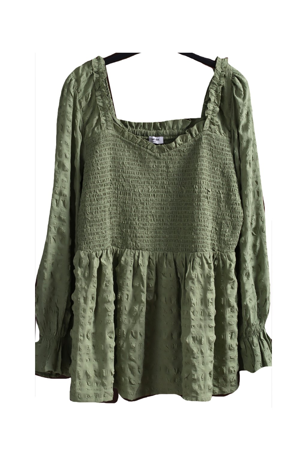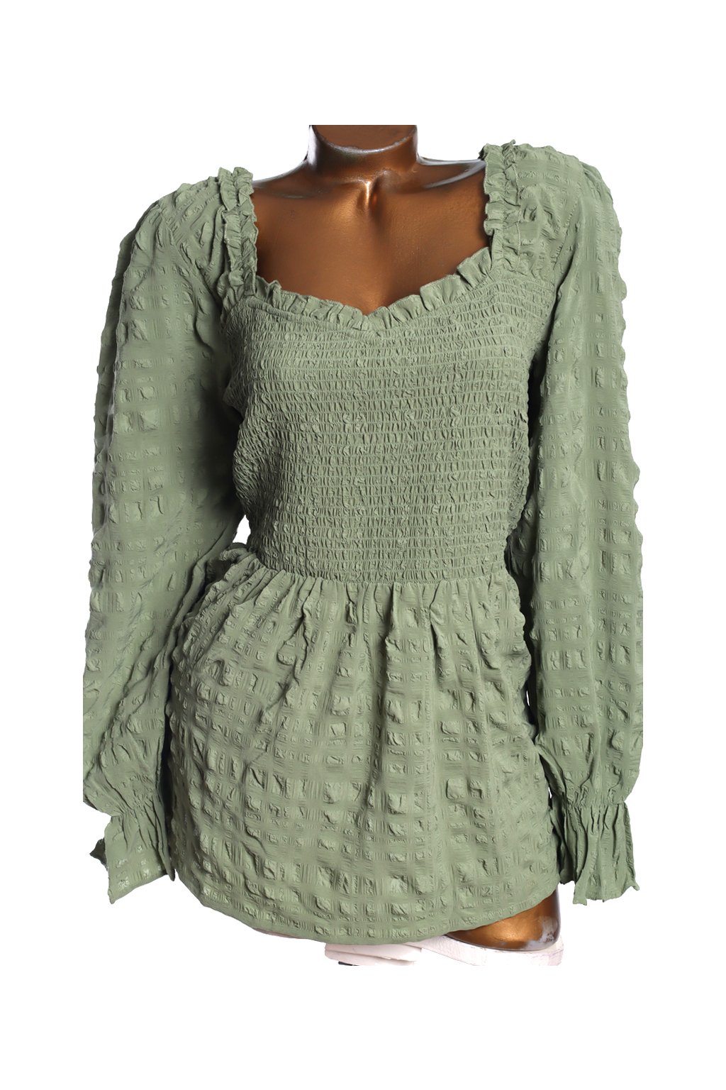 Dámská khaki halenka se žabičkováním a texturou /SIMPLY BE / XXL (50) / UK 22 ANGLIE