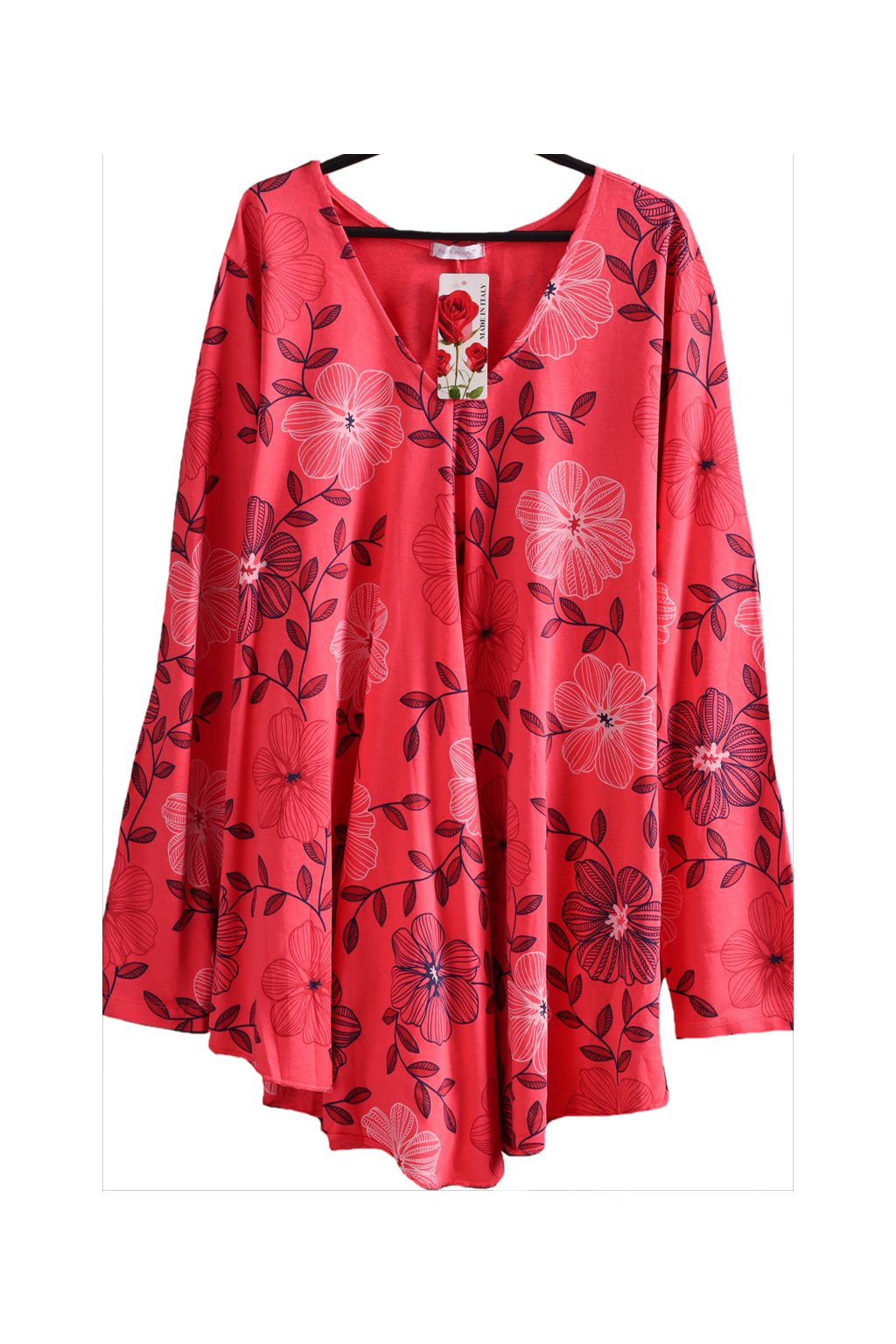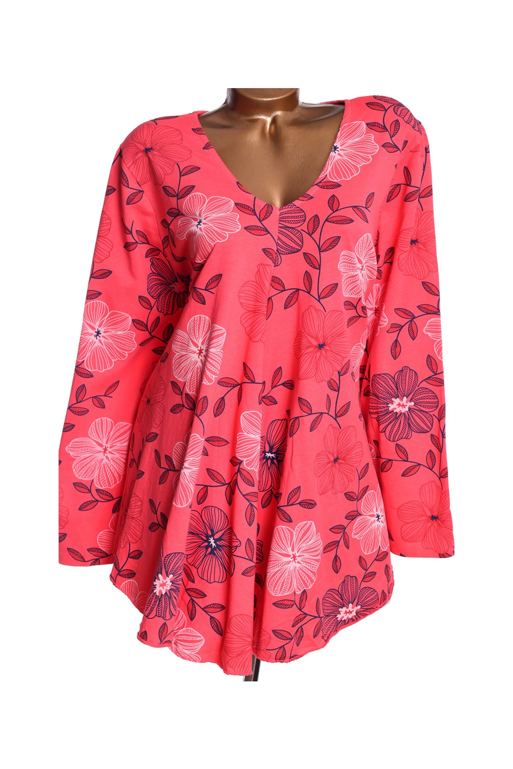 Dámská korálová delší halenka s černo-bílými květy (56/58/60) / UK 30/32 / ANGLIE