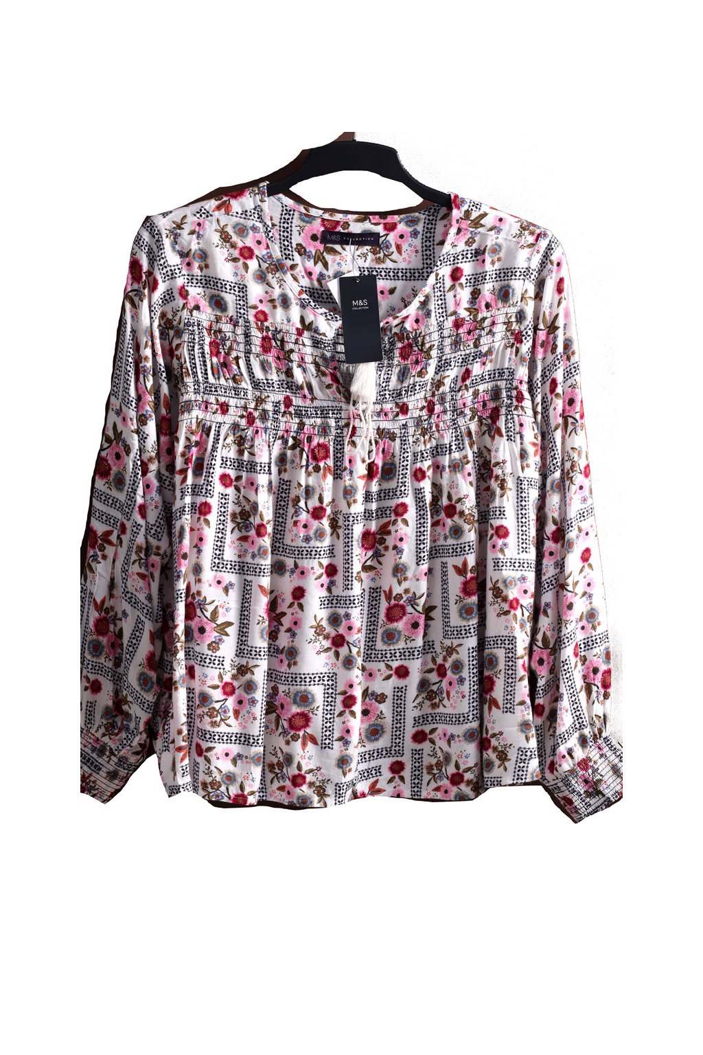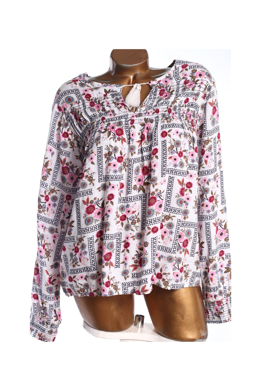 Dámská krémová halenka s modro-růžovými květy a se střapci / M&S / XXXL (50) / UK 22 / ANGLIE