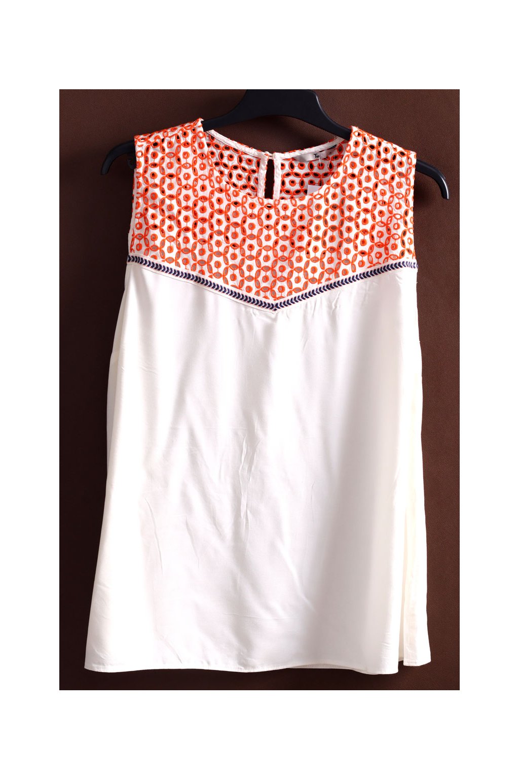 Dámská krémovo-oranžovo-modrá halenka s vyšívaným vzorem / TU / XXL (46) / UK 18 / ANGLIE