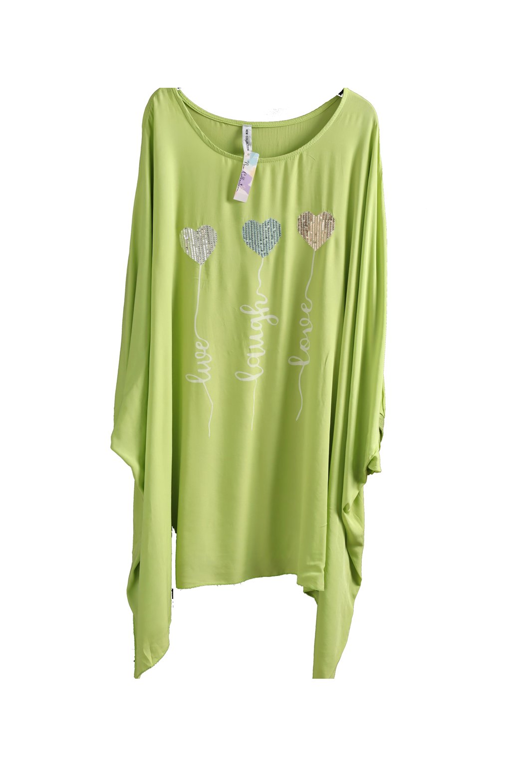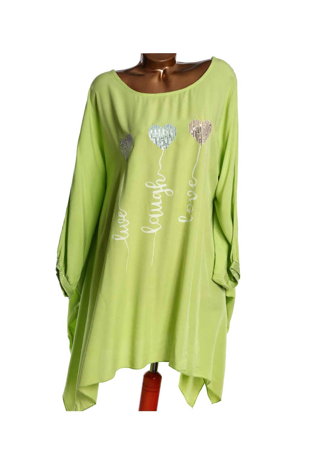 Dámská limetková pončová halenka s flitrovými srdíčky / NEW COLLECTION / oversize / ANGLIE