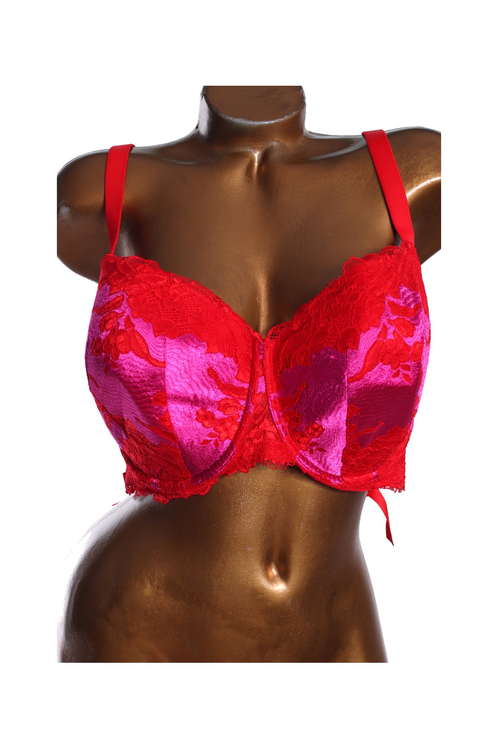 Dámská luxusní červeno-fialová krajková podprsenka / FENTY / 110H / UK 42FF / ANGLIE