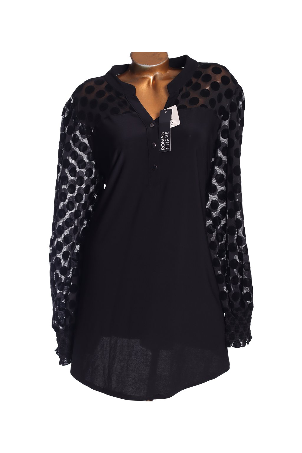 Dámská luxusní černá delší halenka/ šaty s puntíky na rukávech / ROMAN / XXXXL (50/52) / UK 22/24 / ANGLIE