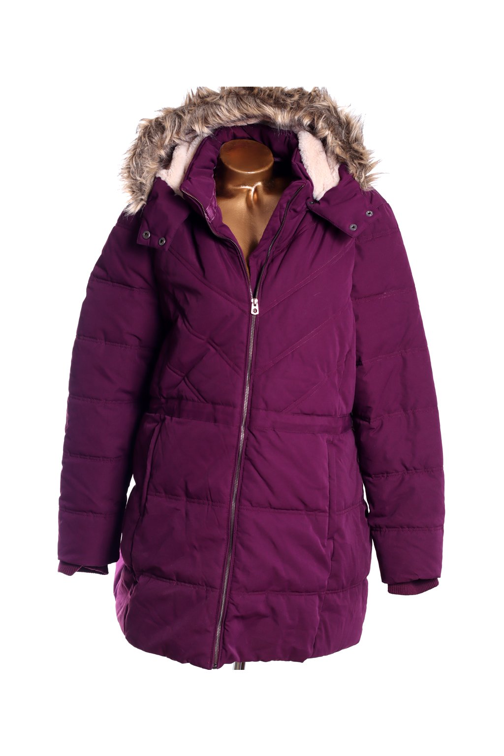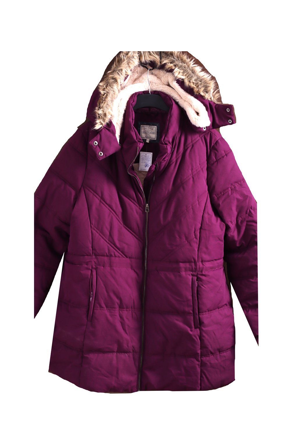 Dámská luxusní značková zimní fialová bunda / s kapucí a kožešinou / FATFACE / XXXL (50/52 ) /UK 22 / ANGLIE